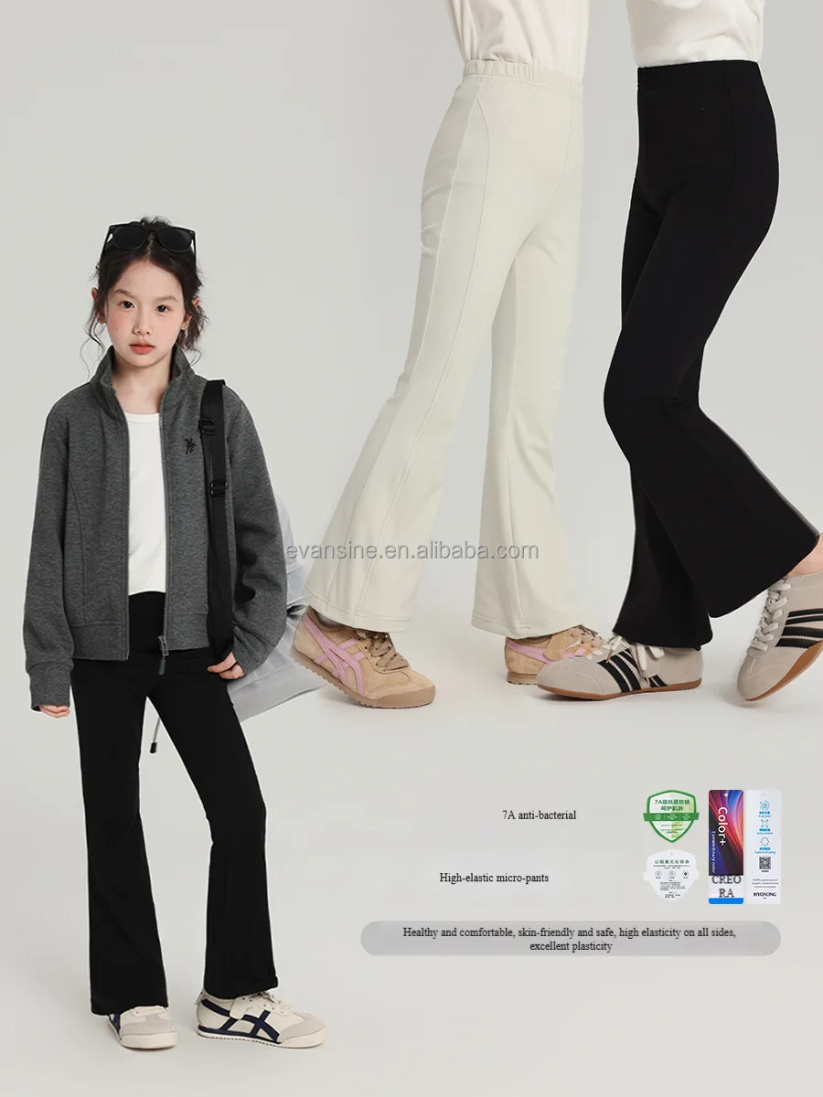 Customizable Kids Girls Soft High Elastic Micro-flare Casual Pants 7A Antibacterial Skin-friendly