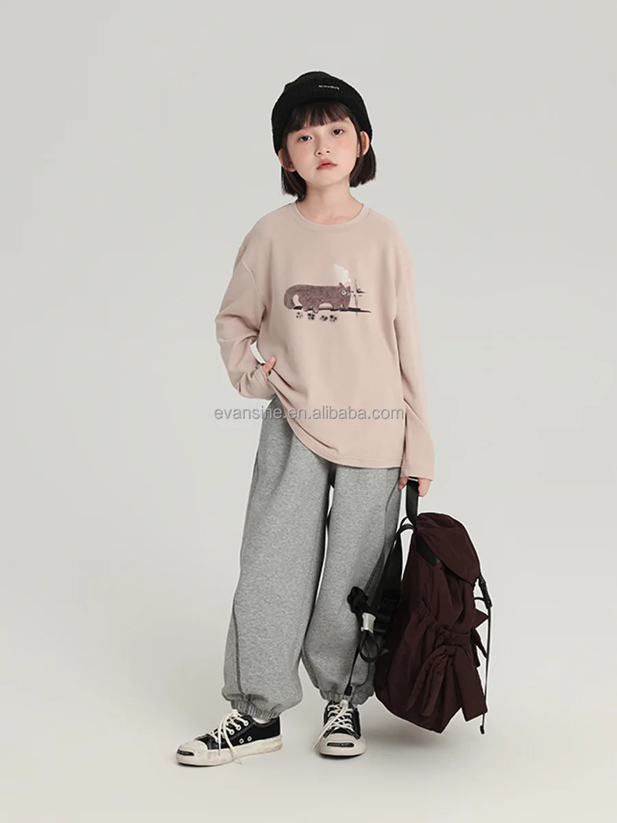 Children's Long Sleeve Top Apparel Customizable 230g Cotton Basic Shirt Layering Tee Plain Colors OEM