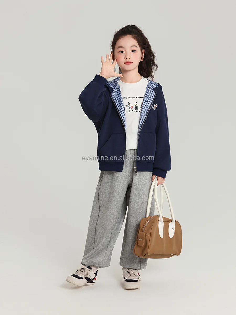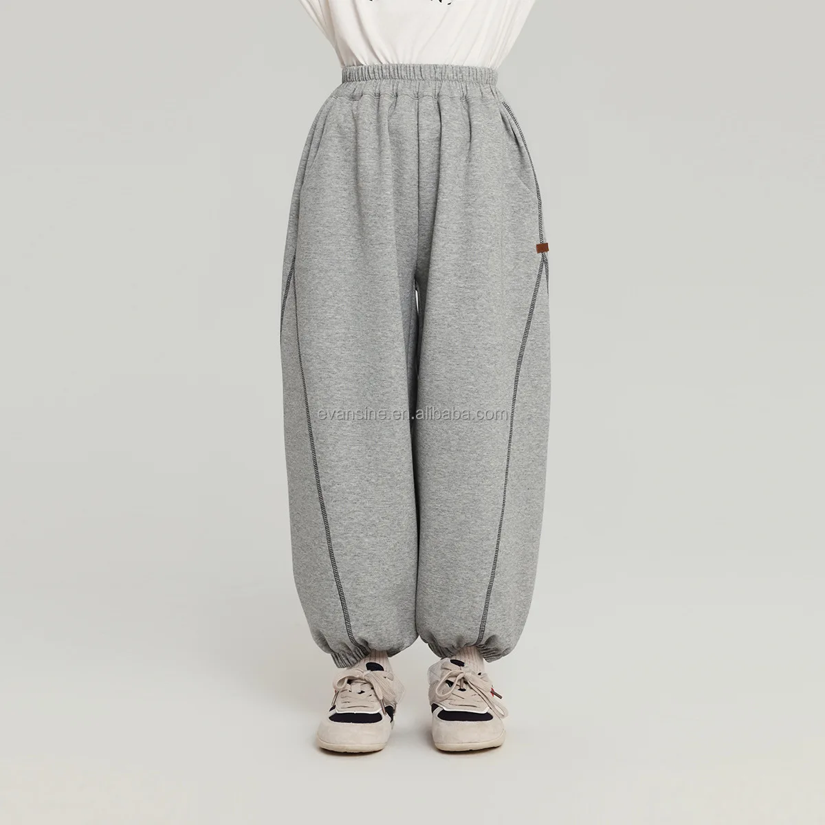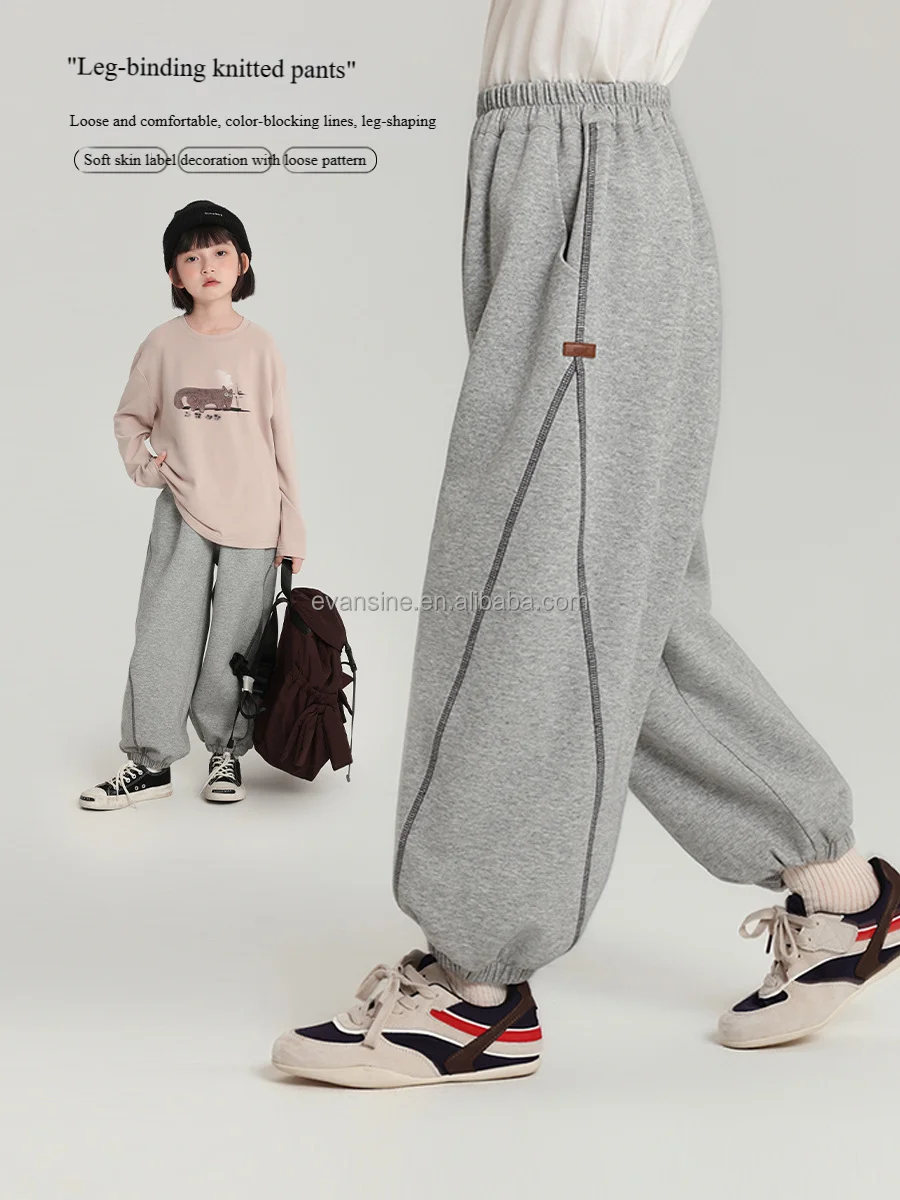 Customizable Kids Girls Loose Sports Knitted Pants Color-blocking Lines Cuffed Skin-friendly
