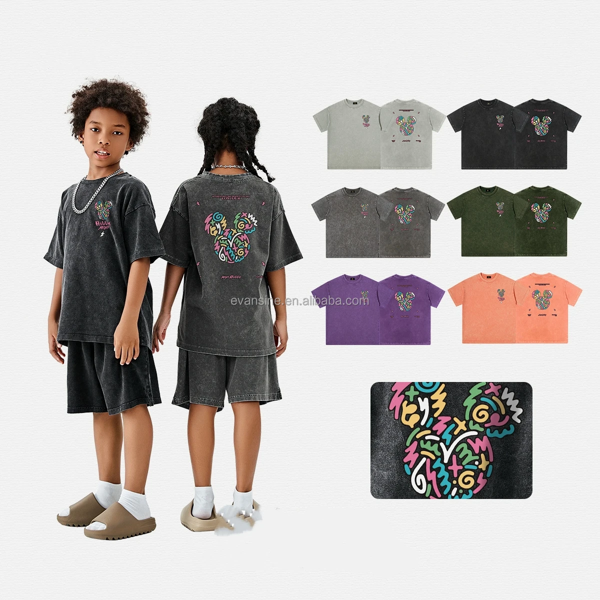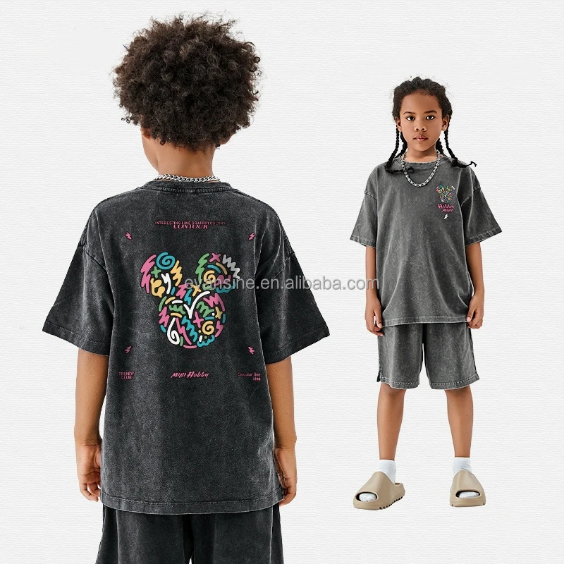 Customizable Kids Apparel Short Sleeve T Shirt 250g Cotton Tee with Colorful Mickey Mouse Print for Boys Girls