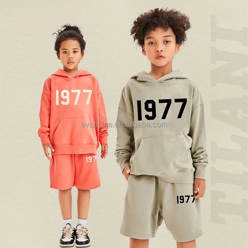 Kids 340g Fleece Apparel Set Customizable Hoodie and Shorts with 1977 Design Heavyweight Cotton Street Style