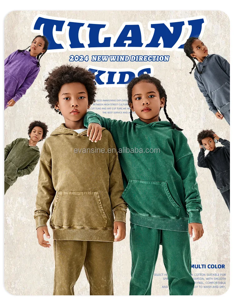 Customizable Kids Apparel Set 350g Heavyweight Fleece Hoodie and Jogger Pants Oversized Washed Effect Multi Colors