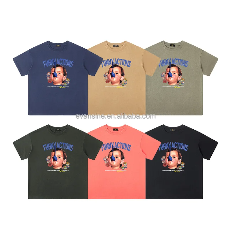 Customizable Kids Apparel Set 230g Short Sleeve T Shirt Shorts with Funny Actions Cartoon Print Oversize Loose Fit