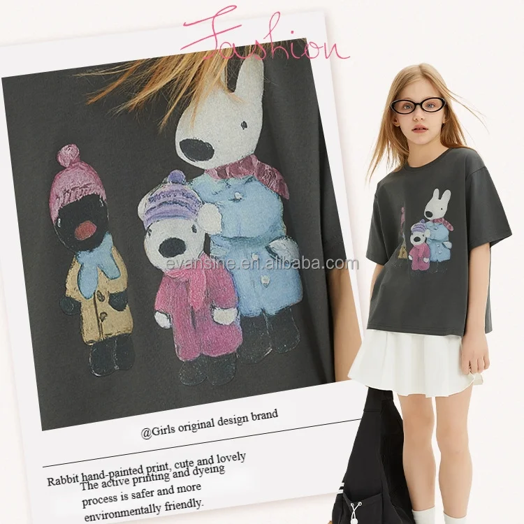 Girls Cartoon Print Top Customizable Apparel Eco Friendly Printing Loose Fit Short Sleeve Tee Versatile Wear