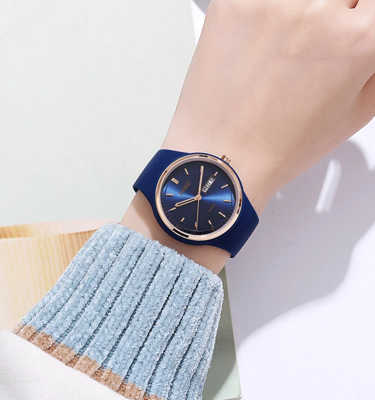SKMEI 2008 China Factory Silicone Strap Round Watches Analog Quartz Elegant Wrist Watches Easy Read Ladies Watches