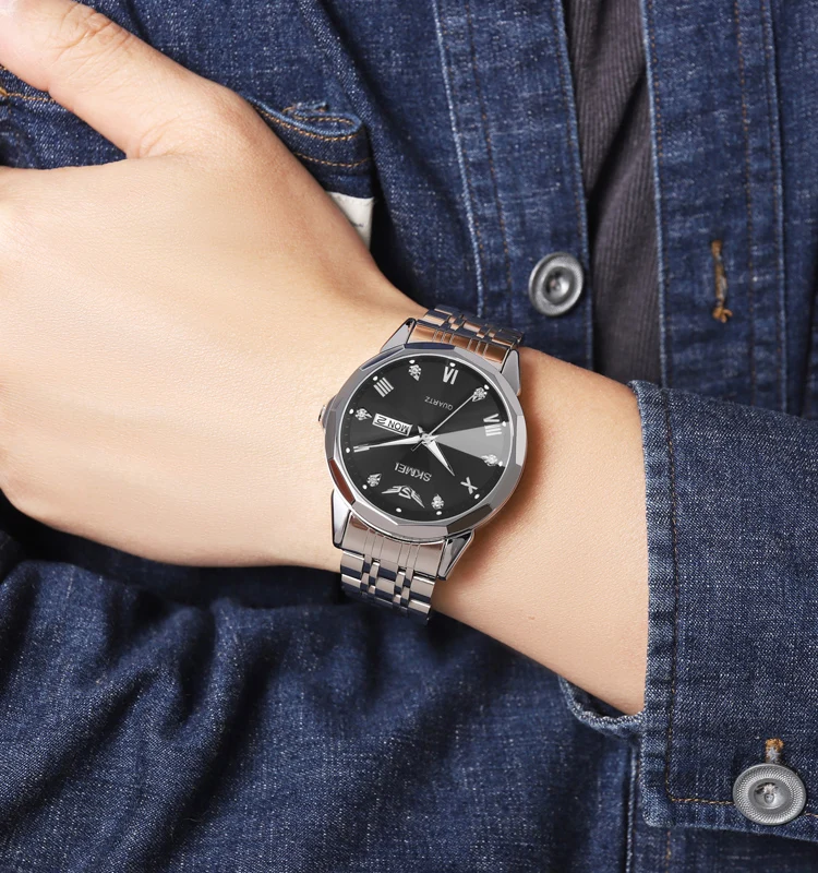 Skmei 9348 Luxury Charm Cartoon Auto Date Luminous Pointer Stainless Steel Strap Water Resistant Business Watch for Men
