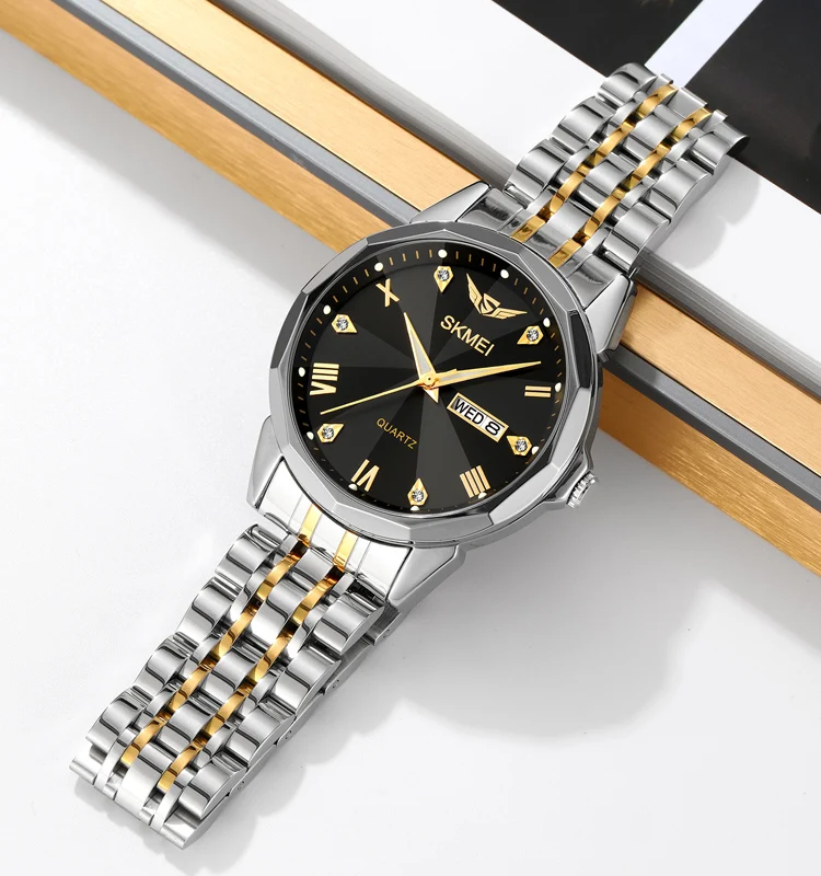 Skmei 9348 Auto Date Luminous Pointer Stainless Steel Strap Business Watch for Men Fashion Waterproof Quartz Antique Retro Sport