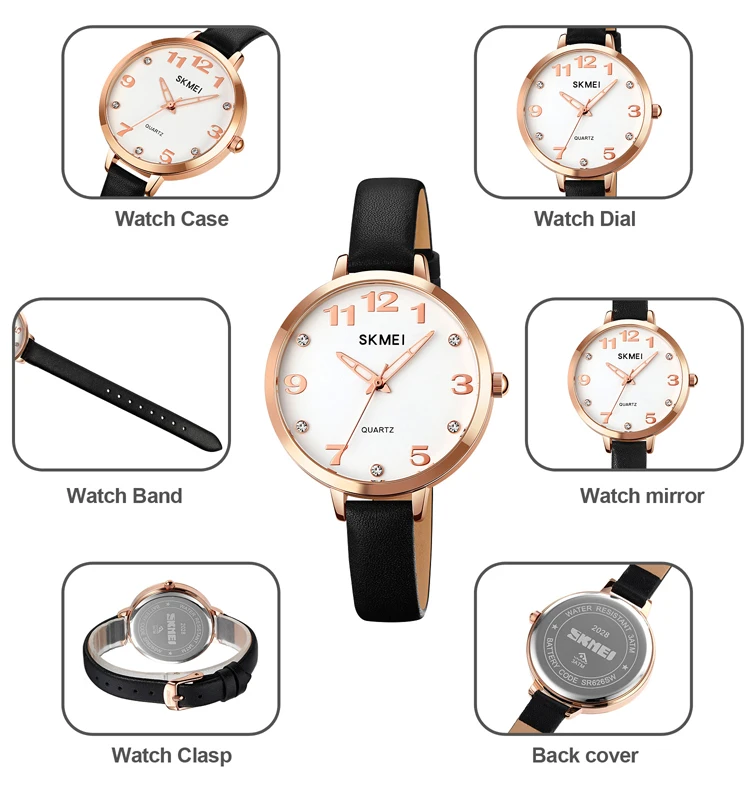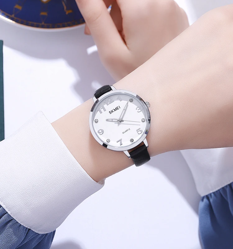SKMEI 2028 Quartz Movement Fashion Women Watch Genuine Leather Strap Female Wristwatch for Ladies Girls Watches