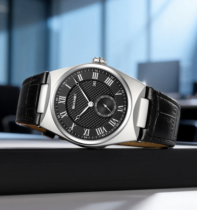 SKMEI 9390 OEM Customized Men Quartz Wrist Watch 3ATM Waterproof Genuine Leather Strap Watch for Men
