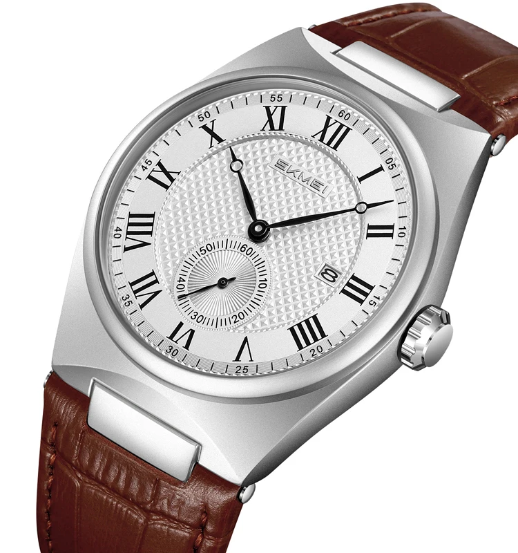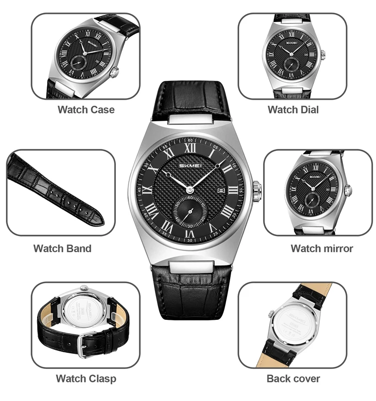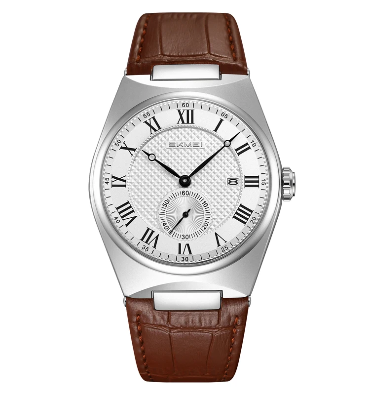 SKMEI 9390 Wholesale Men's Fashion Quartz Watches Top Selling Leather Straps Date Watch for Men Leather Box Gift