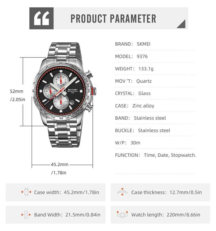 SKMEI 9376 OEM ODM Custom Luxury High Quality Classic Watch Fashion Waterproof Luminous Watch Business Quartz Watch for Man