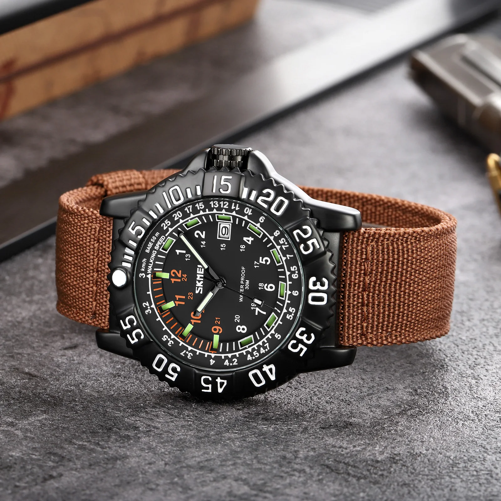 SKMEI Special Design 9281 Men's Quartz Watch Antique Luxury Design Nylon Strap High Quality Sample OEM 3BAR Water Resistant