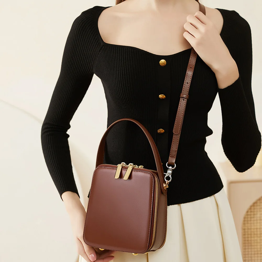 Designer Vintage Popular Ladies Women Crossbody Shoulder Hand Bags Fashion Casual Large Capacity Cowhide Leather Bucket Bag 2026