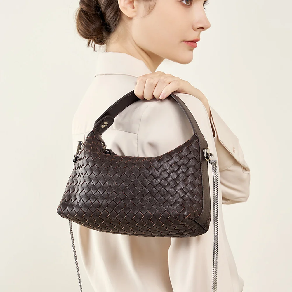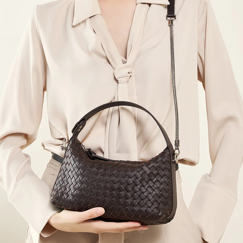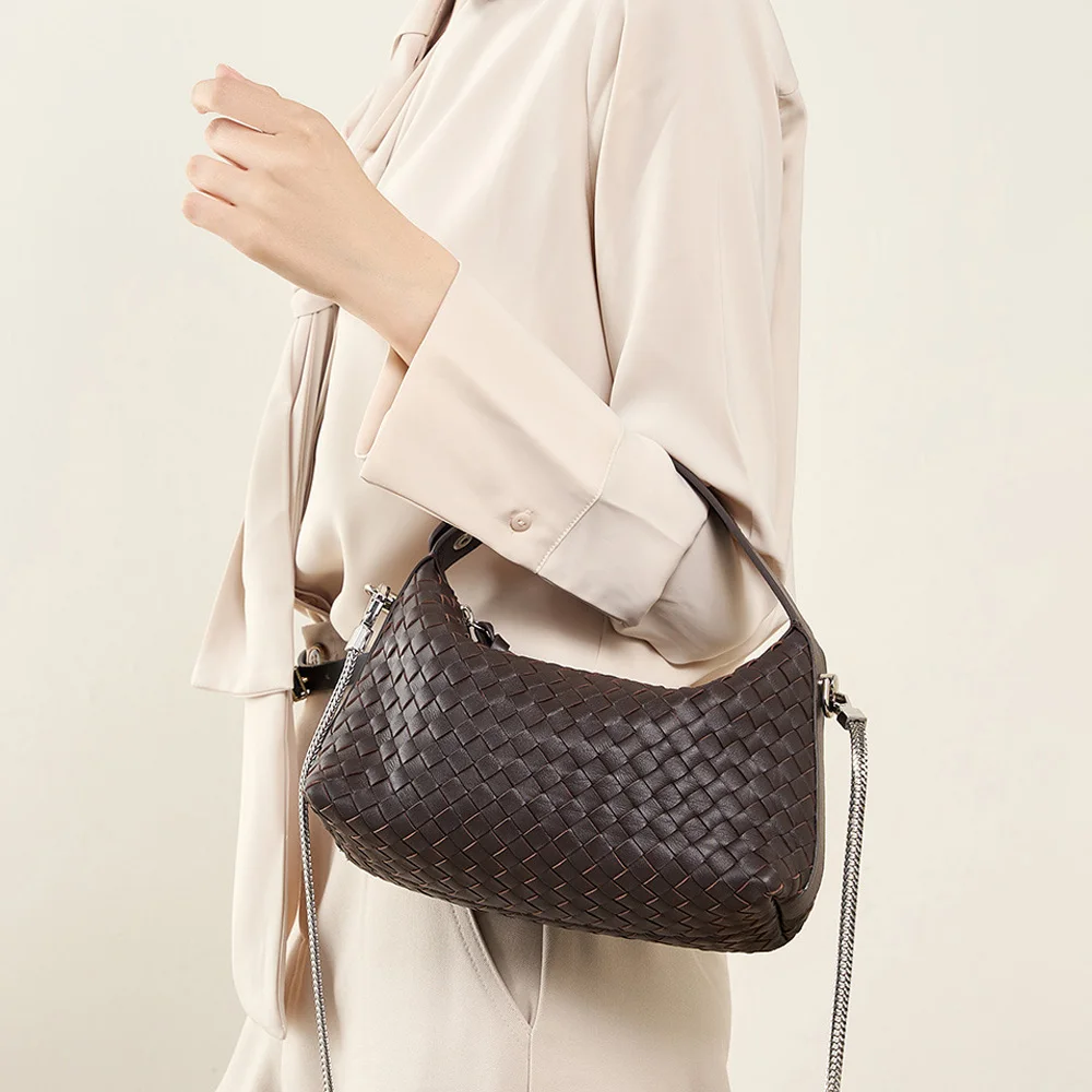 Ladies Genuine Leather Woven Handbags Custom Portable and Stylish Crossbody Shoulder Bag for Women Wholesale Dumpling Bag