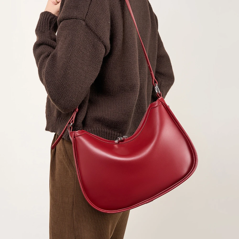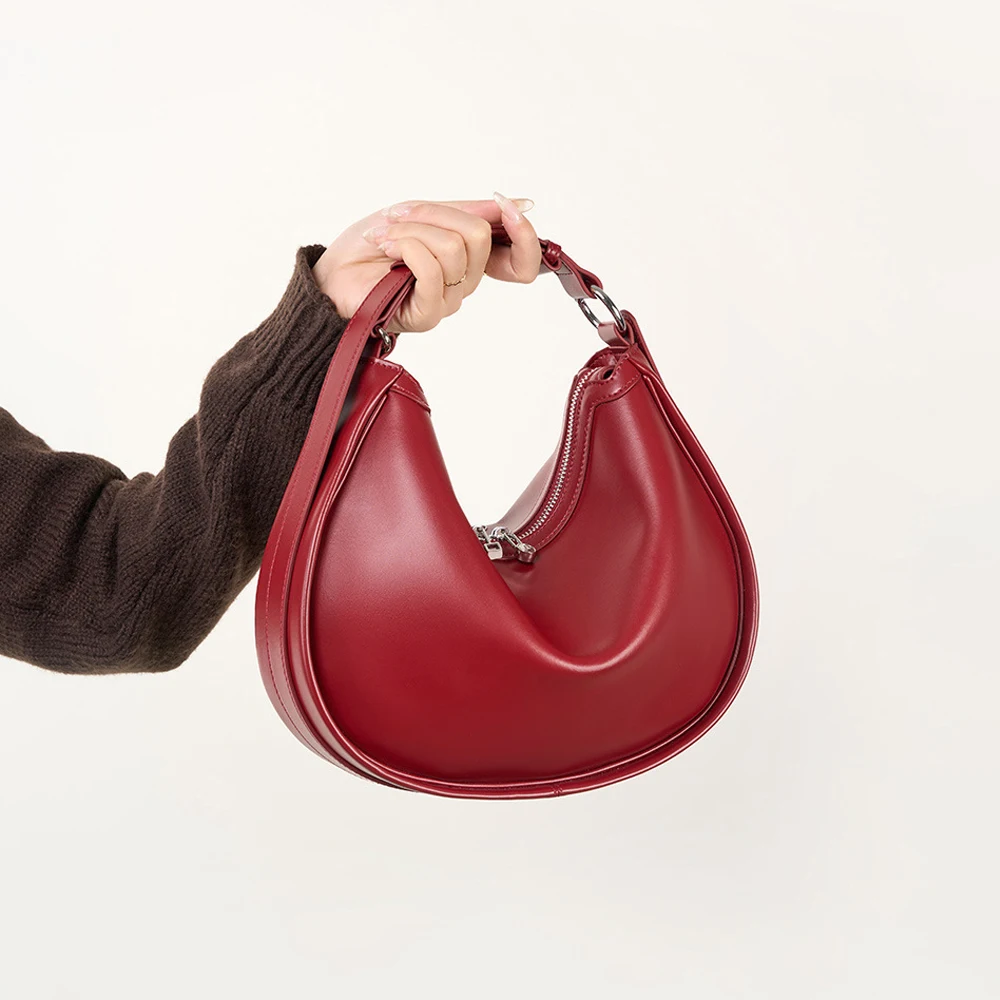 2026 Women's Niche Design Leather Bag Simple High-End Single Shoulder Crossbody Fashionable Portable Zipper Trendy Versatile