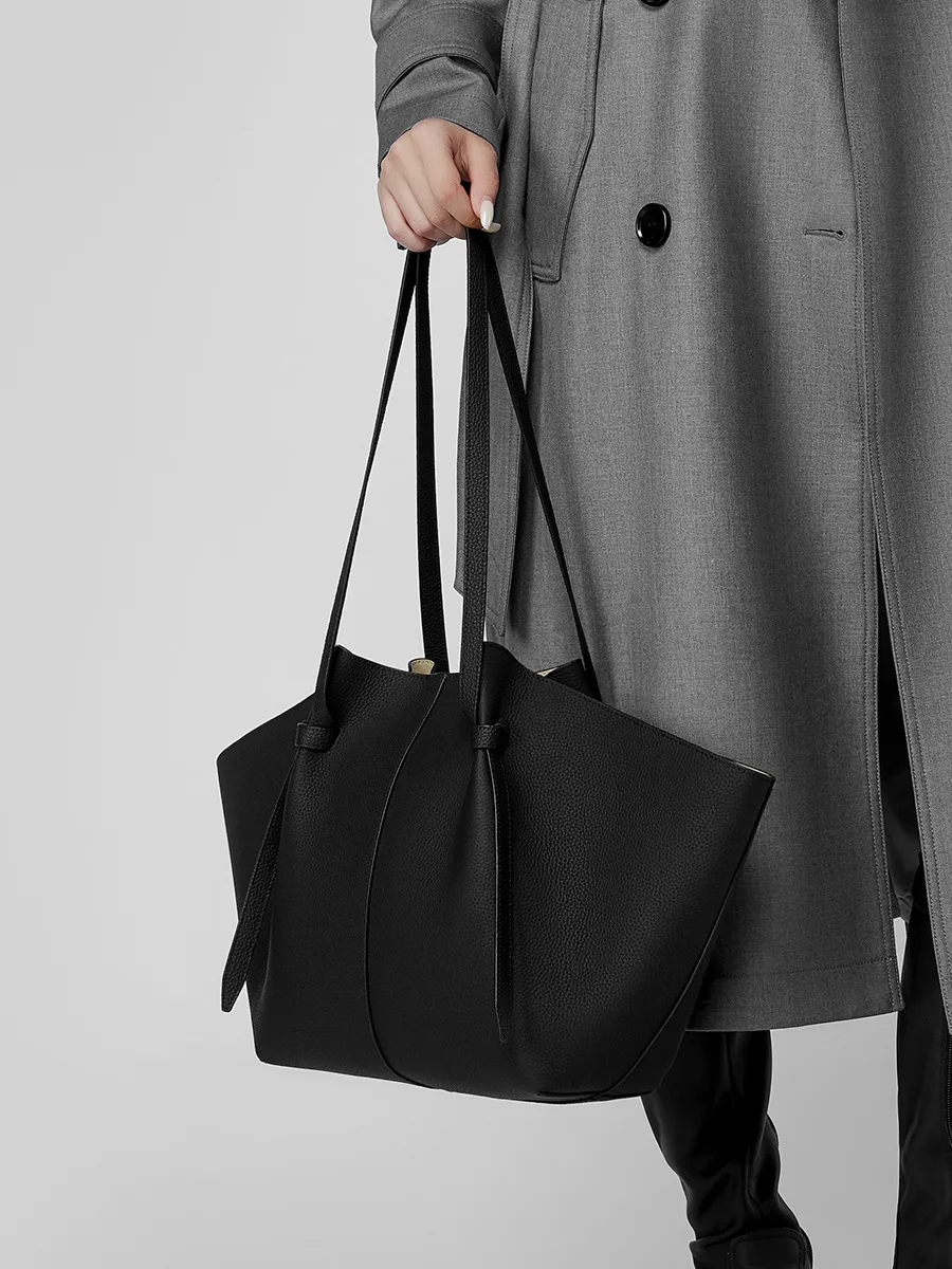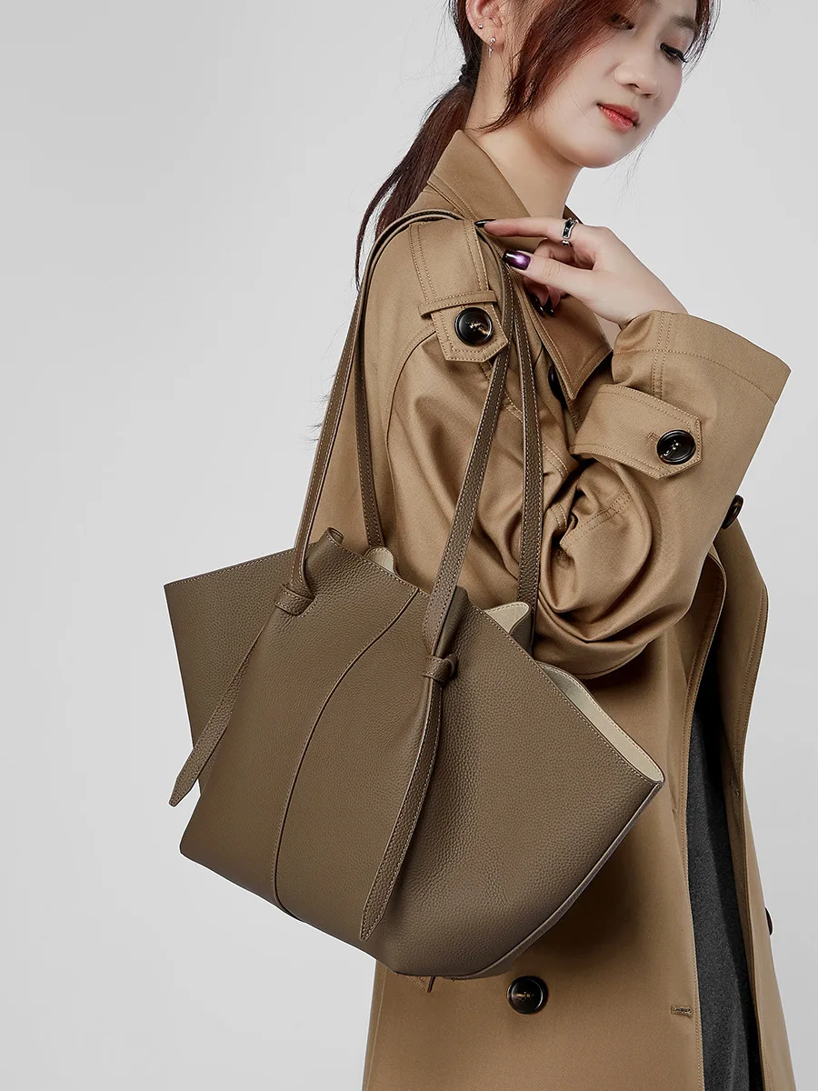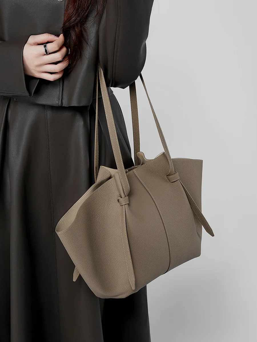 The First Layer of Cowhide Large Capacity Tote Bag Leather Women's Bag Fashion Bat Everything Hand Wing Bag
