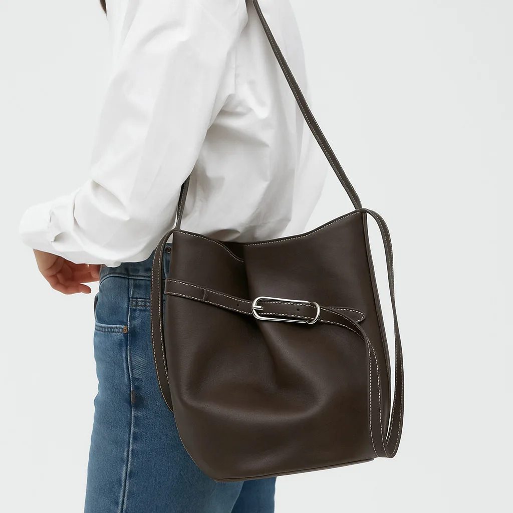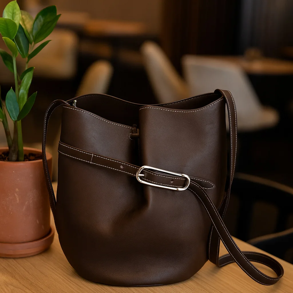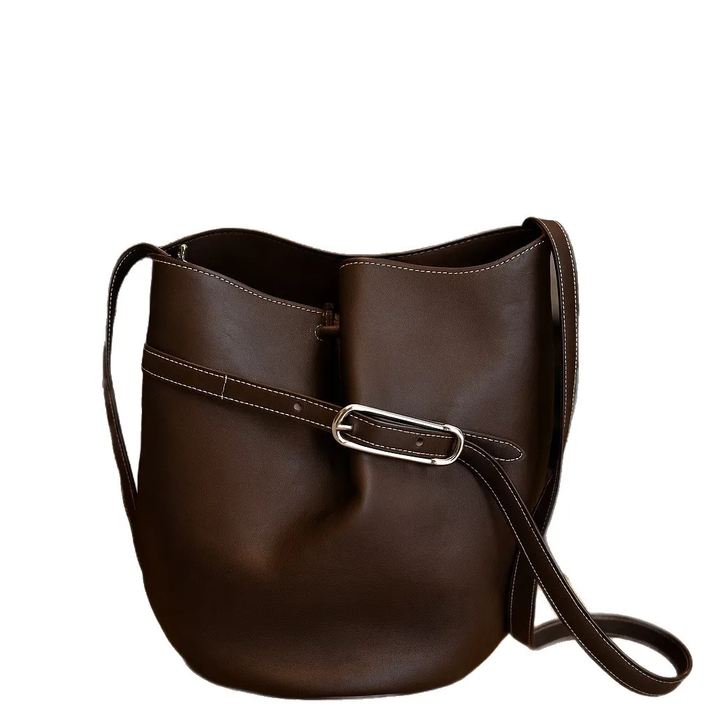 Designer Vintage Popular Ladies Women Crossbody Shoulder Hand Bags Fashion Casual Large Capacity Cowhide Leather Bucket Bag 2026
