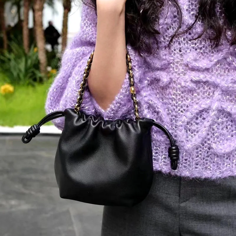 Cowhide Cloud Bag, 2026 New Style, Pull-string Lucky Bag, Banquet Bag, Genuine Leather Women's Bag