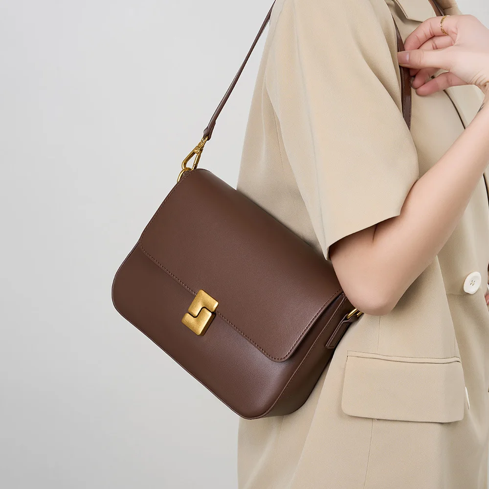 High End Women's Genuine Leather Bags Bolsas Para Mujer Fashion Sling Bag Sac Pour Femme Brown Beige Flap Bag for Women