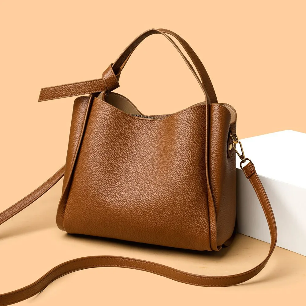 Designer Vintage Popular Ladies Women Crossbody Shoulder Hand Bags Fashion Casual Large Capacity Cowhide Leather Bucket Bag 2026