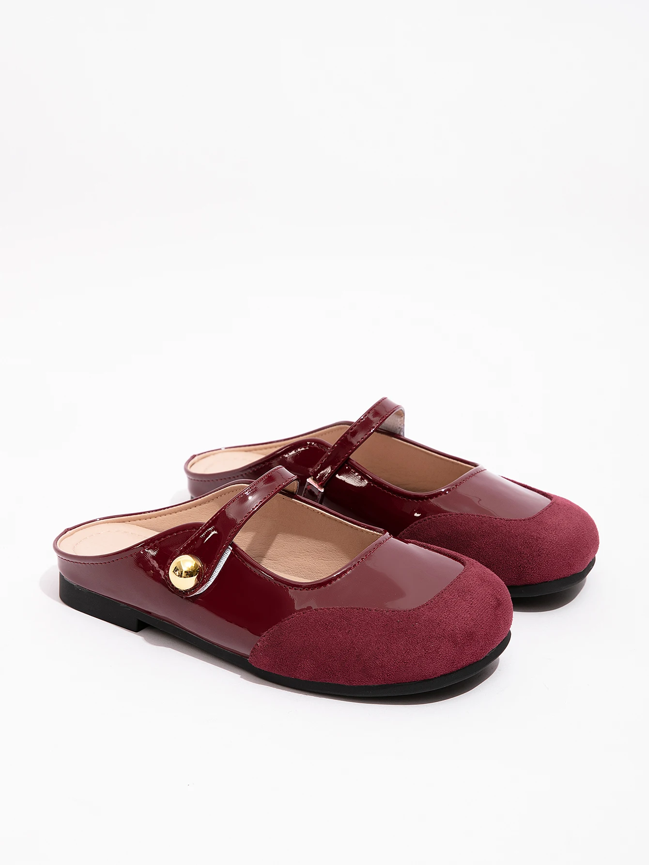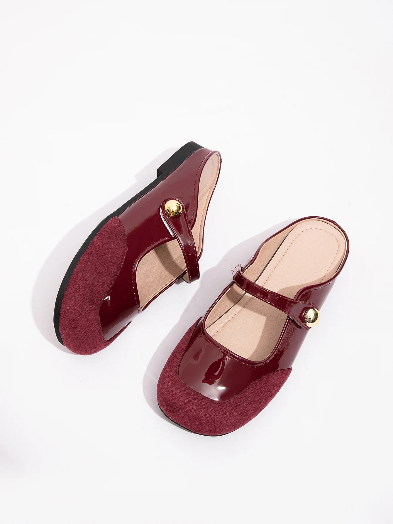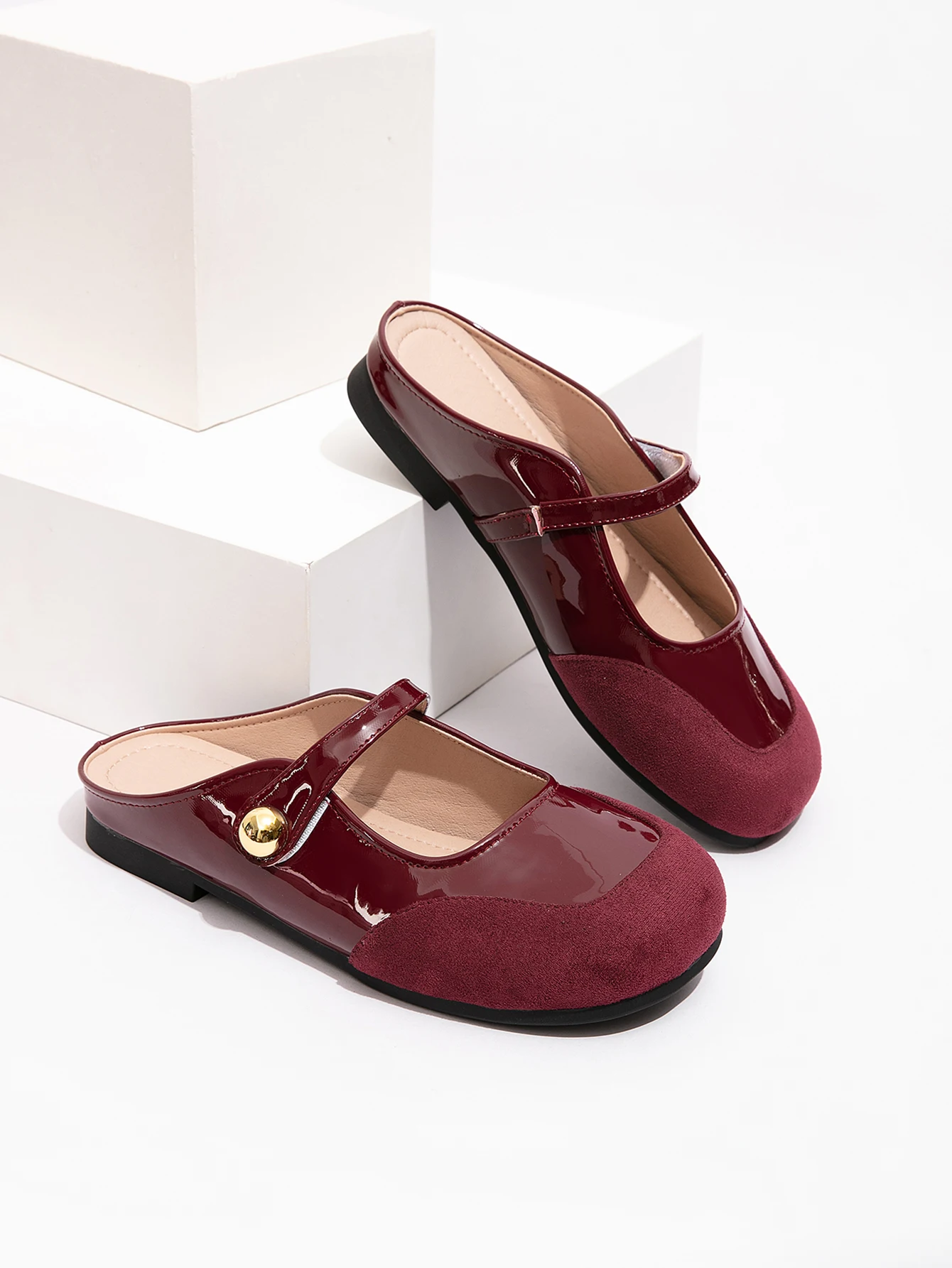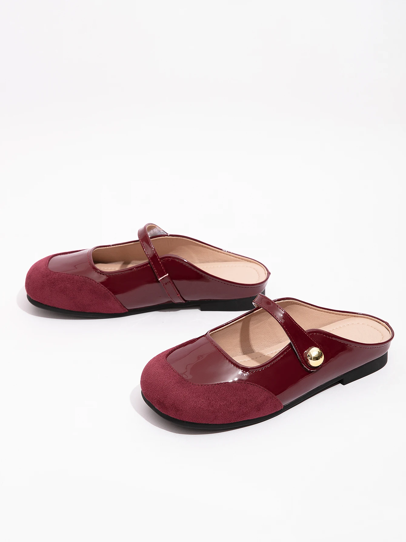 Wholesale French-style Baotou Half Slip-on Red Mary Jane Shoes for Women Soft Leather Spring Summer Shallow Mouth Clogs Mules