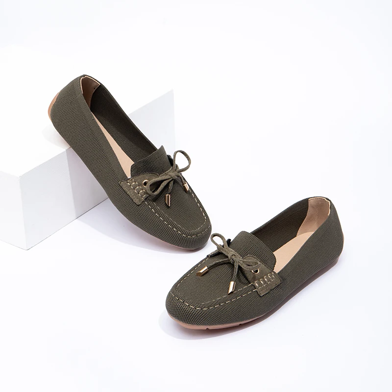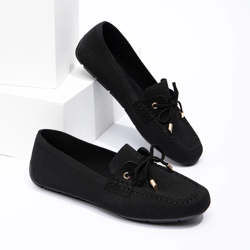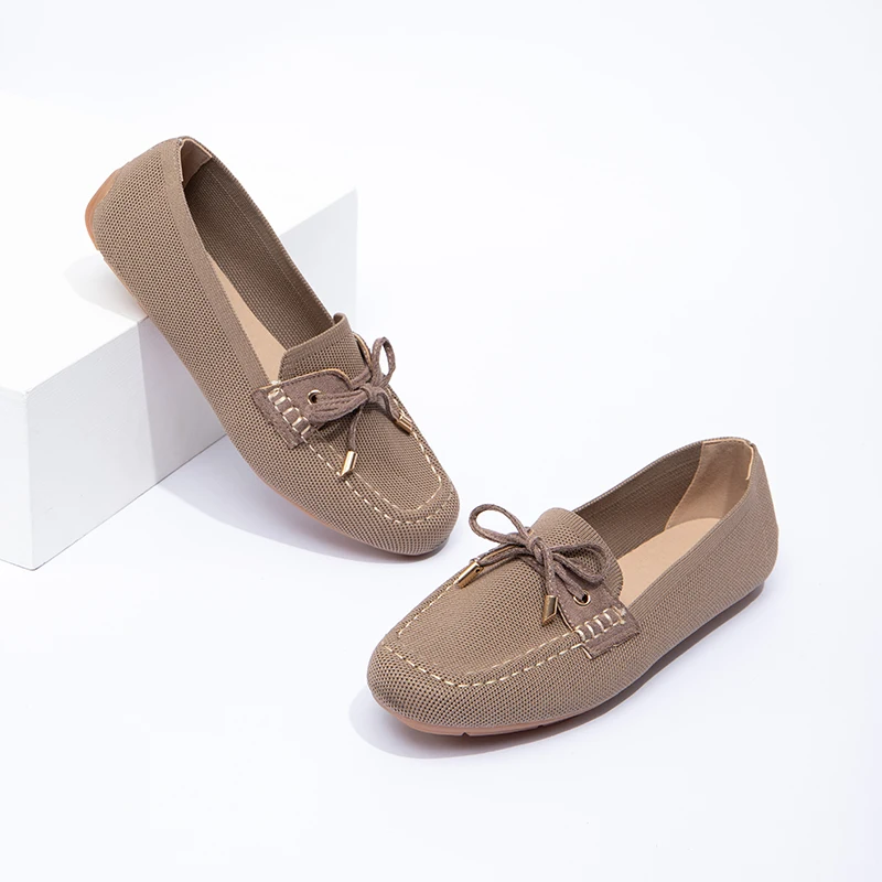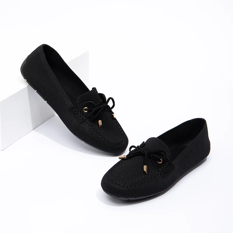 Wholesale Elegant Lady Ballet Flats Casual Women Shoes Anti-slip Round Toe Suede Upper Office Bow Flat Shoes