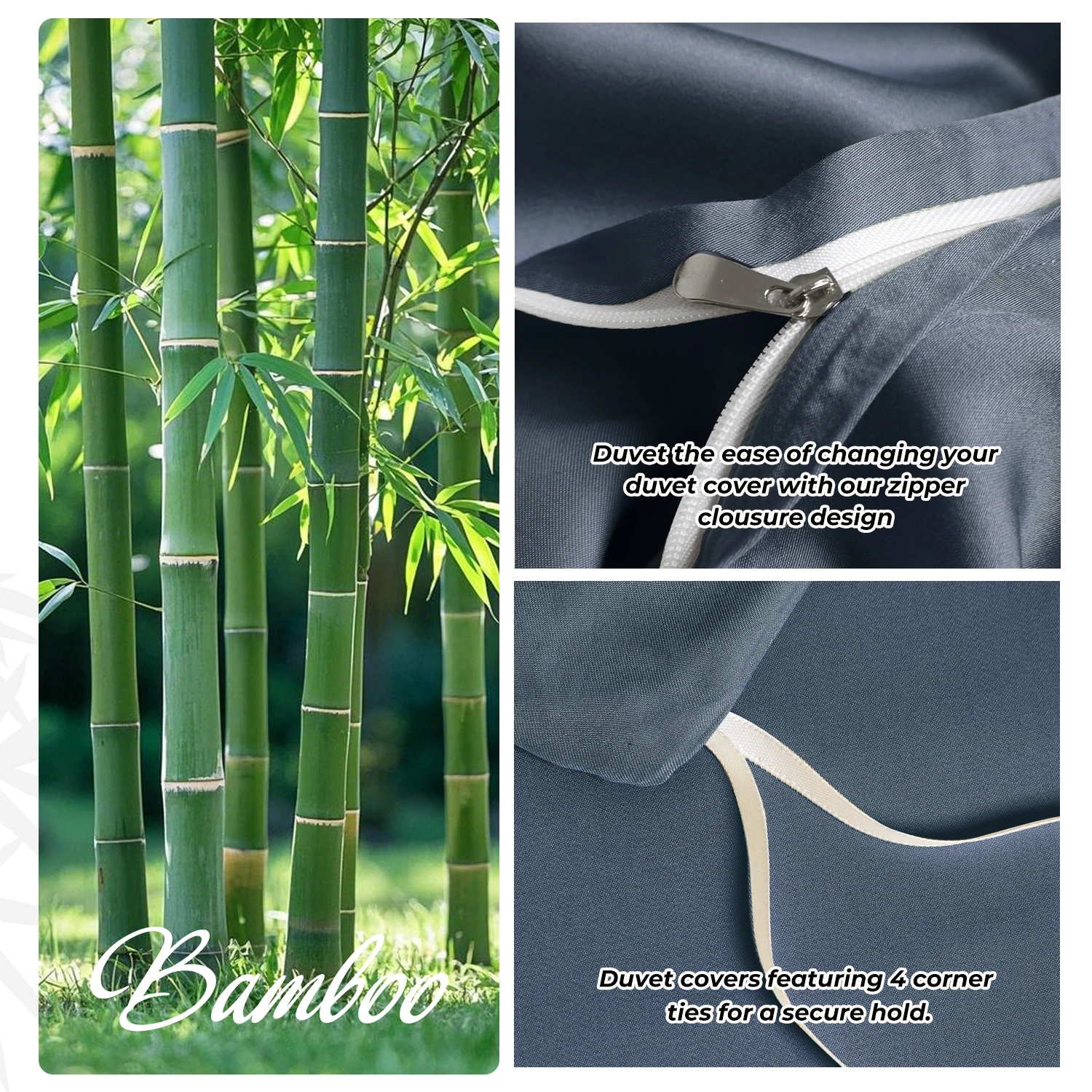 Luxury Bamboo Duvet Cover Set Woven Knitted Queen Size Hypoallergenic Hotel Bedding