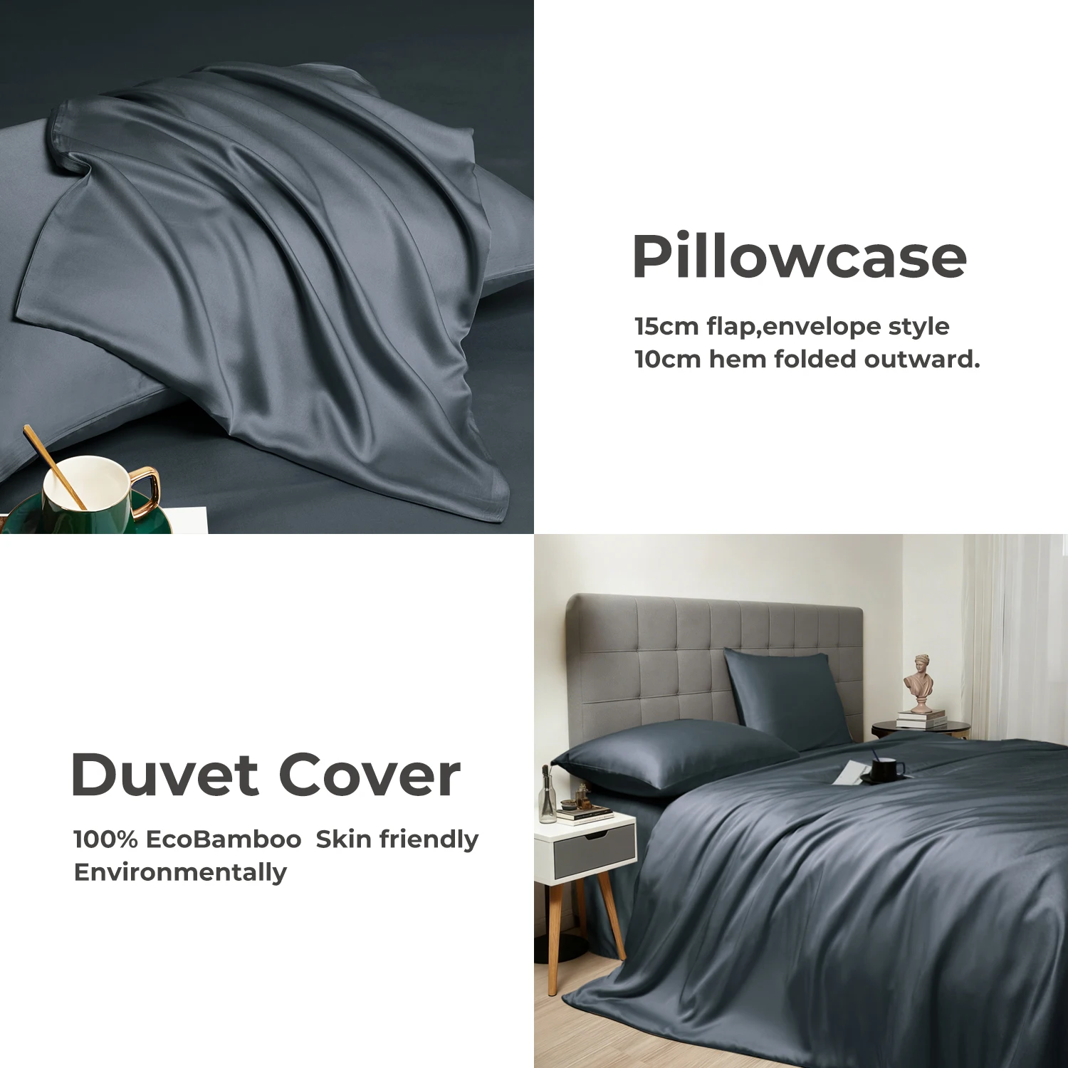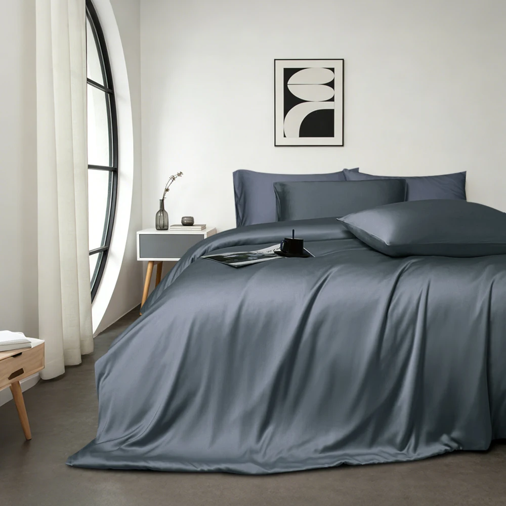 100% Bamboo Fiber Woven Modern Solid Color Bedding Set Super King Size Includes Flat Bed Sheet Fitted Duvet Cover