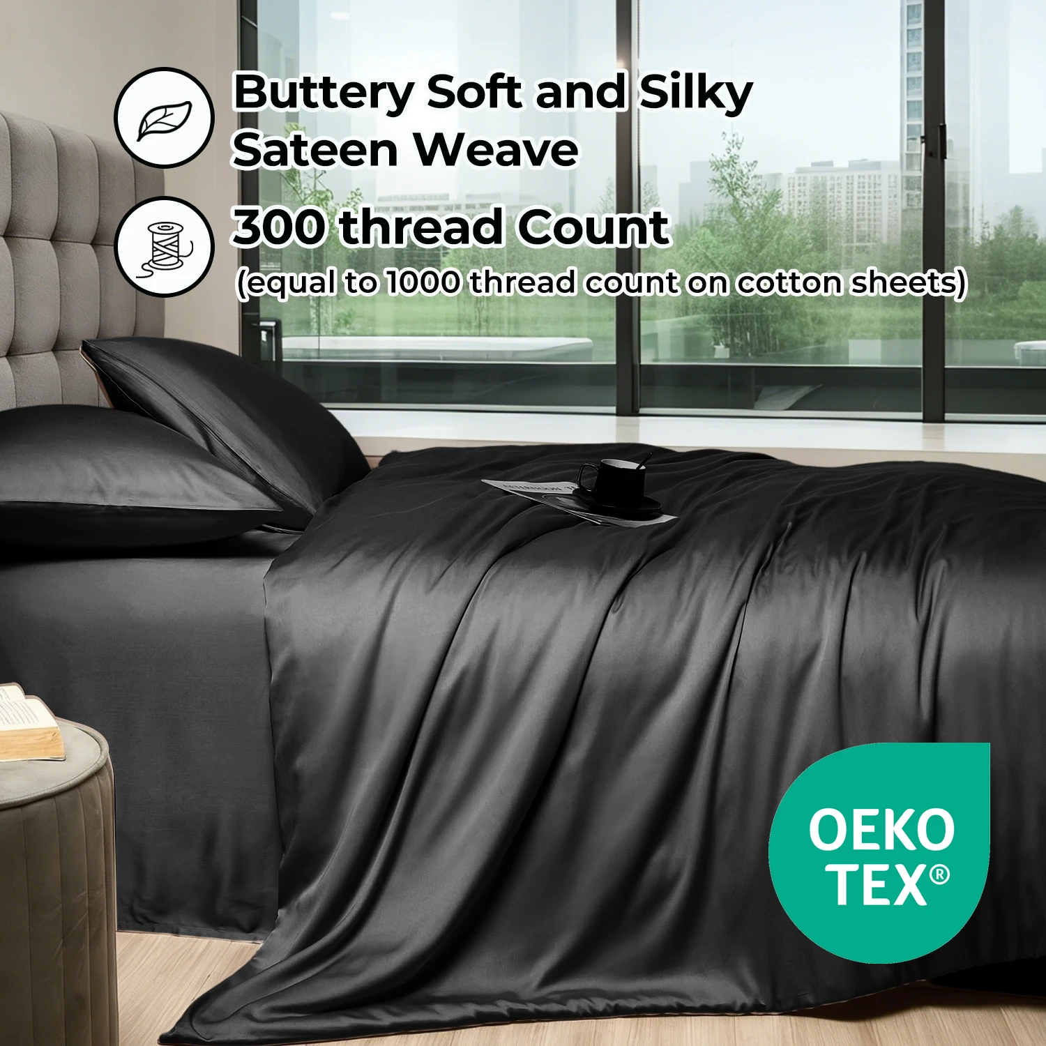 100% Bamboo Fiber Woven King Size 300tc 3-Piece Modern All-Season Duvet Cover Set with Flat Sheet Fitted Sheet and Pillowcases