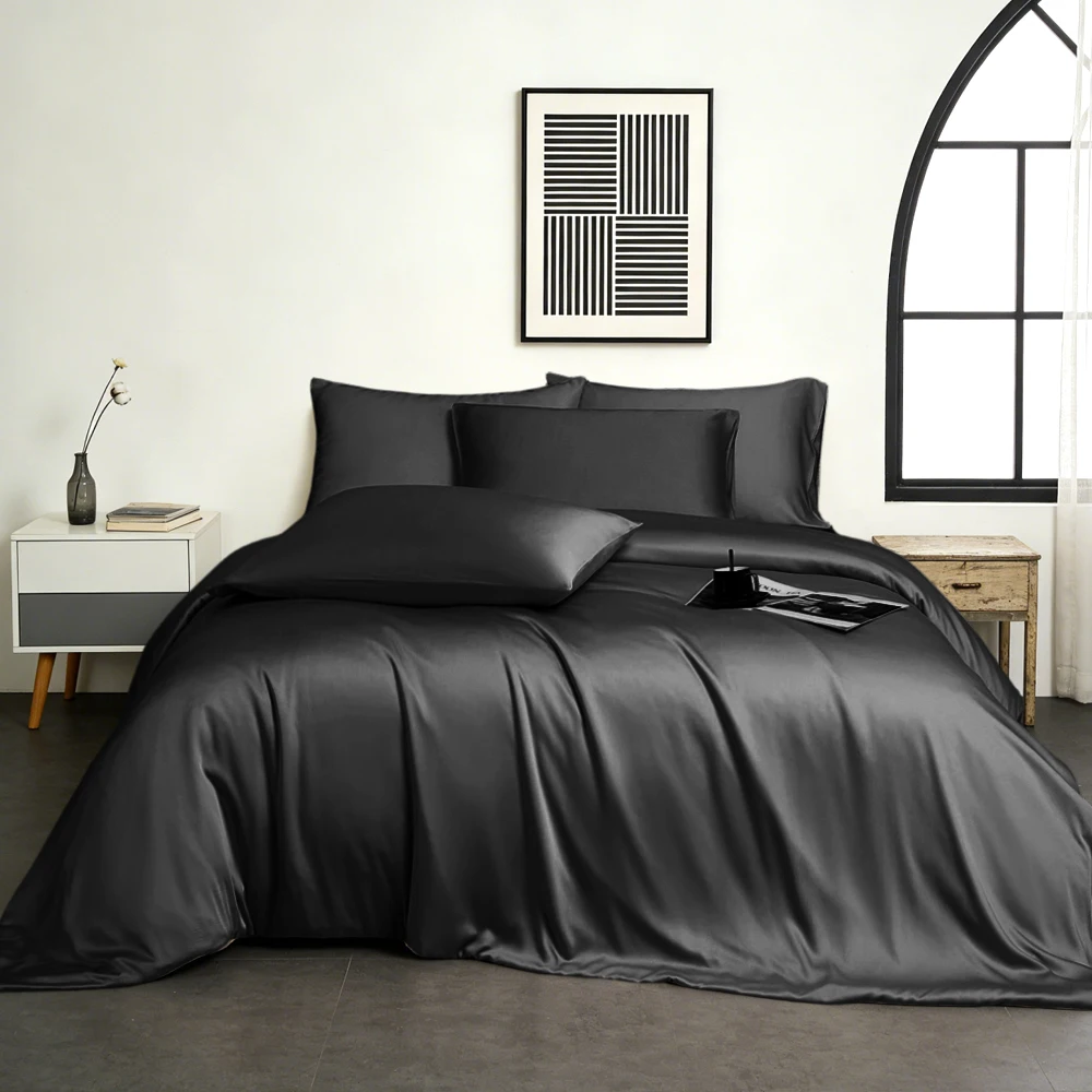 100% Bamboo Fiber Woven Modern Solid Color Bedding Set Super King Size Includes Flat Bed Sheet Fitted Duvet Cover