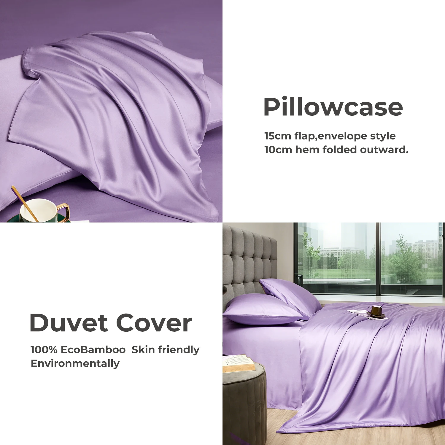 100% Bamboo Fiber Woven Modern Solid Color Bedding Set Super King Size Includes Flat Bed Sheet Fitted Duvet Cover