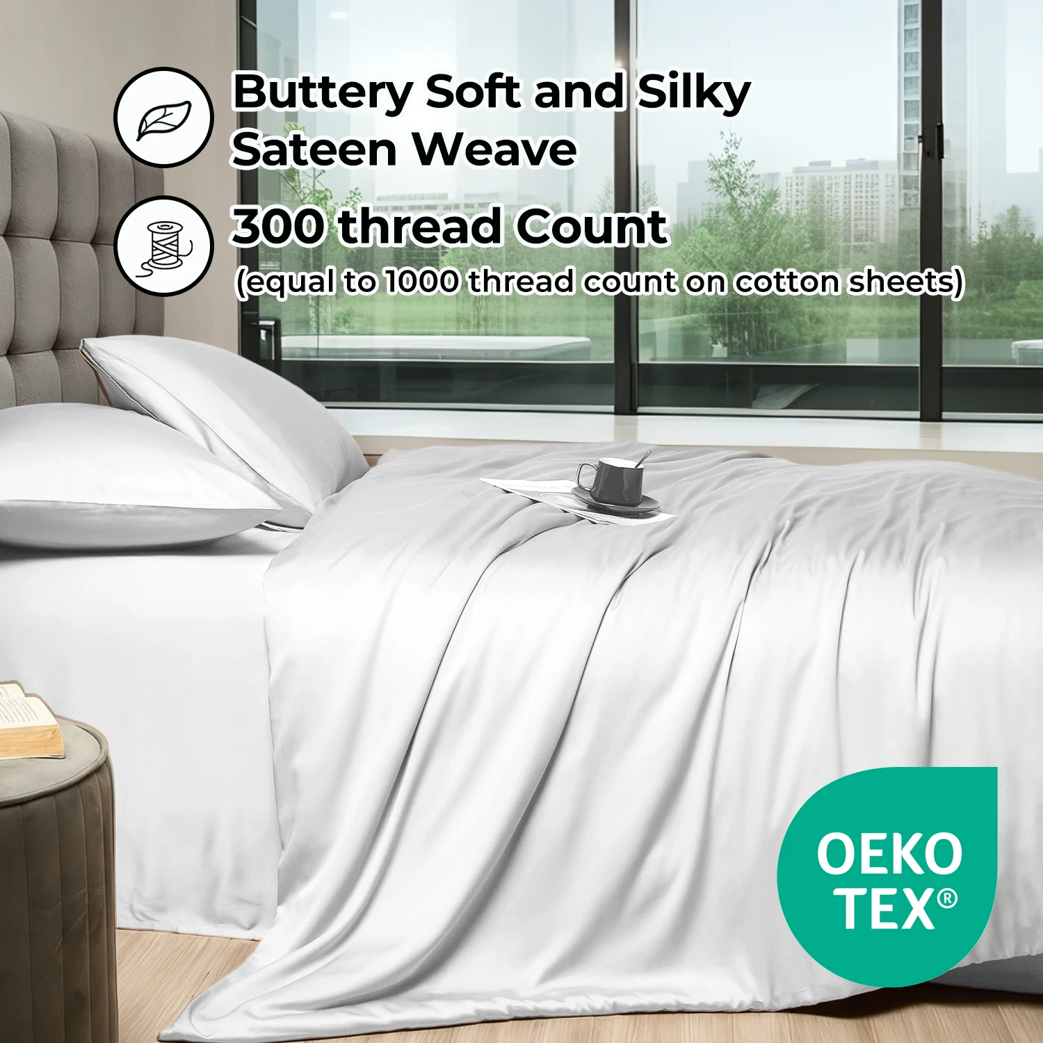 100% Bamboo Fiber King Size 300tc 3-Piece Modern Duvet Cover Set with Flat Sheet Fitted Sheet and Pillowcases