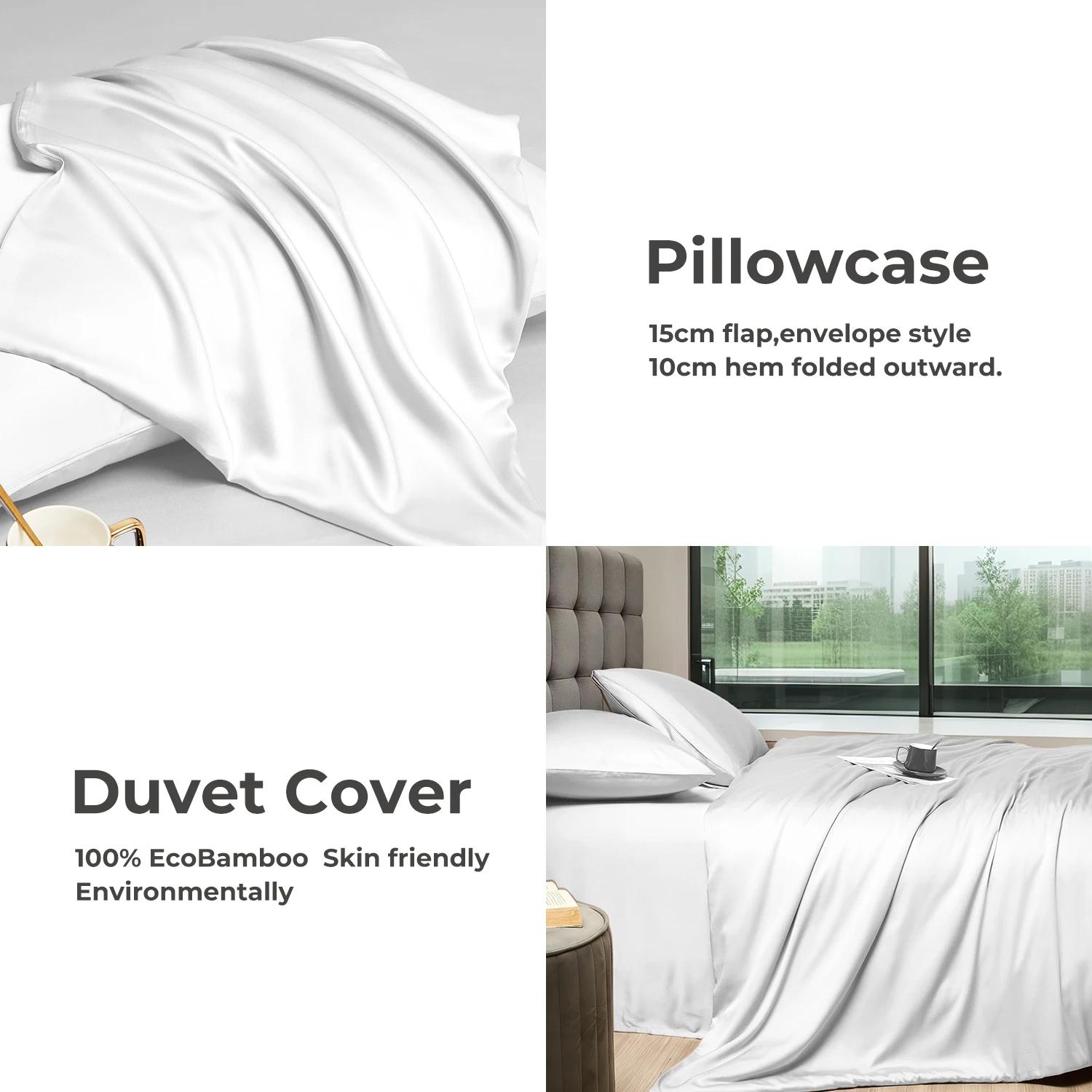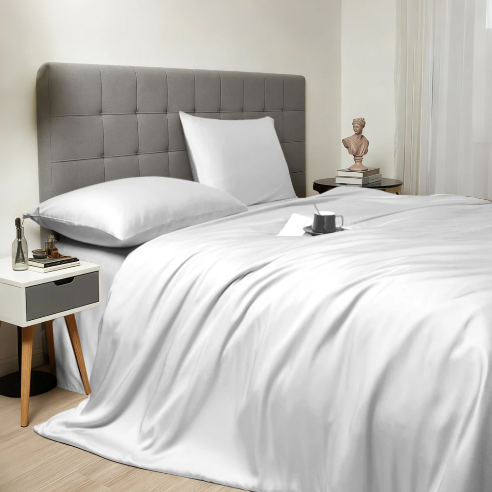 100% Bamboo Fiber Woven Modern Solid Color Bedding Set Super King Size Includes Flat Bed Sheet Fitted Duvet Cover