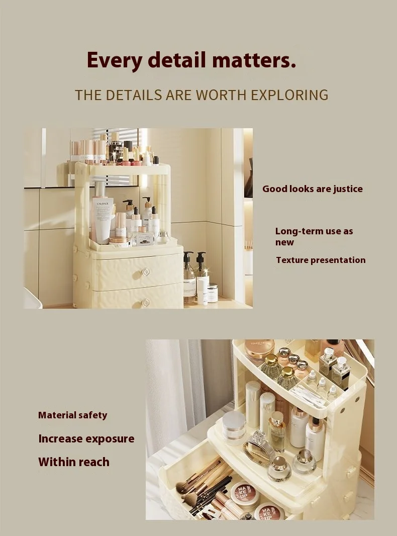 Multifunctional Large-capacity Plastic PP Aluminum Household Drawer Cosmetic Storage Box Desktop Multi-layer Cosmetic Case
