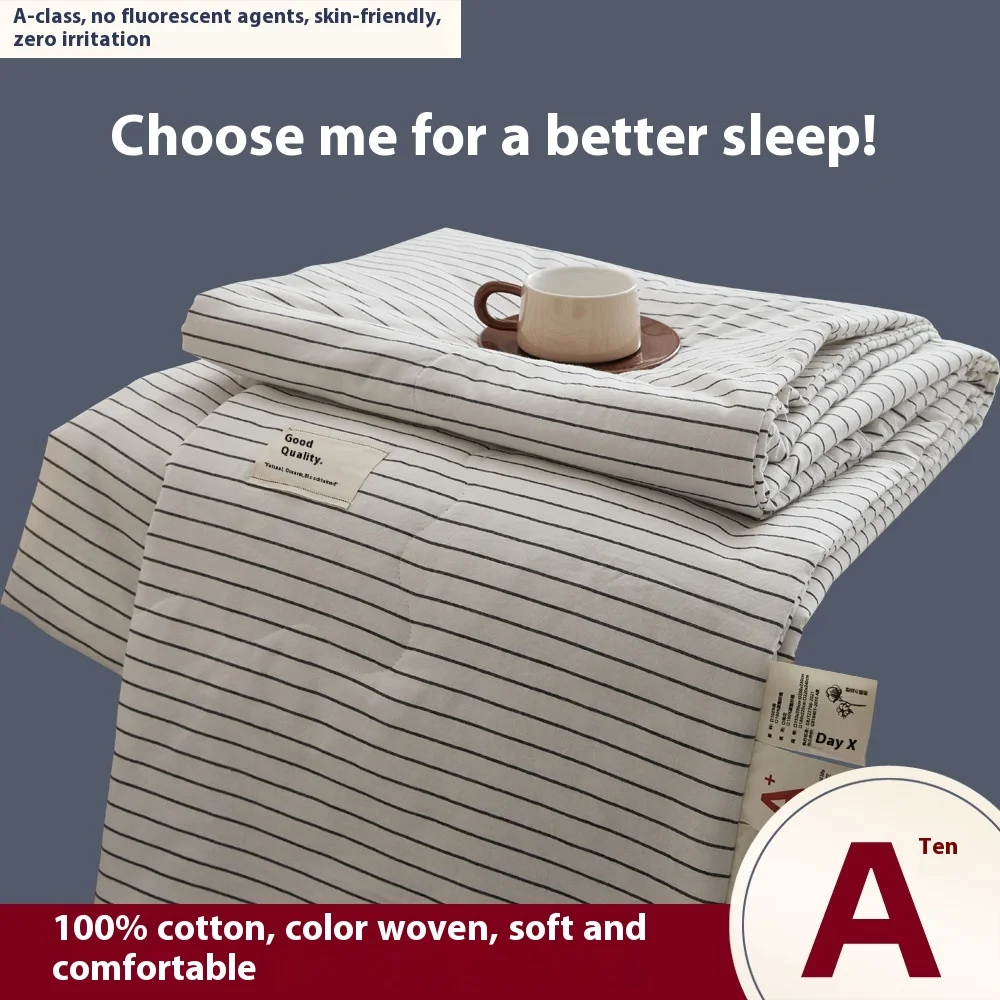 Cotton Yarn-dyed Skin-friendly Washed Polyester Filling Quilt Striped Design All-Season Use Washable