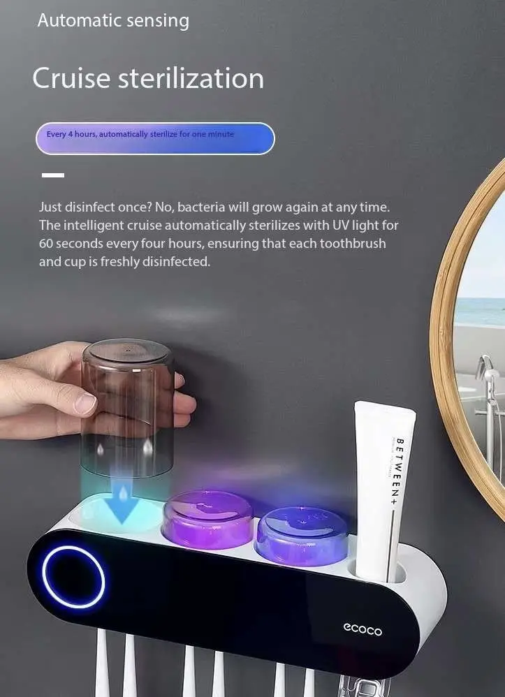 Wall-mounted Eco-Friendly Modern Toothbrush Holder Sterilizer Ultraviolet Intelligent Electric Sterilization Mouthwash Cup