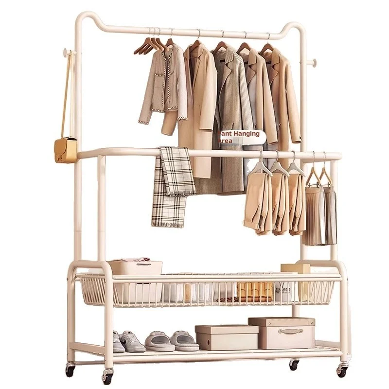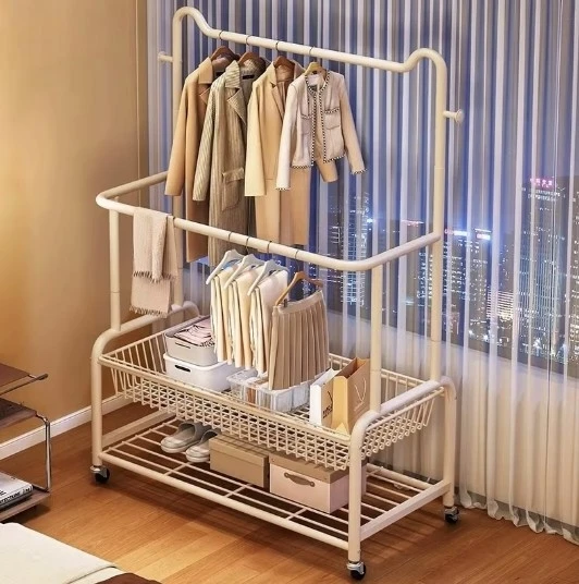 Modern Simple Sustainable Floor-Standing Movable Multi-Functional Pants Storage Rack with Hanging Iron Skirt Rack Made in China