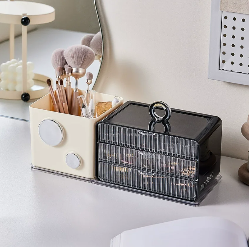 Cream Wind Jewelry Box Cosmetic Storage Box Eyebrow Pen Holder Tissue Box Desktop Set Made in China