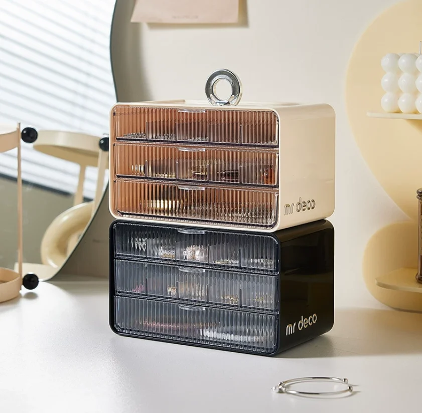 High-end Modern Multifunctional Sustainable Plastic Space-Saving Large Capacity Top-Press Jewelry Box for Kitchen Living Room
