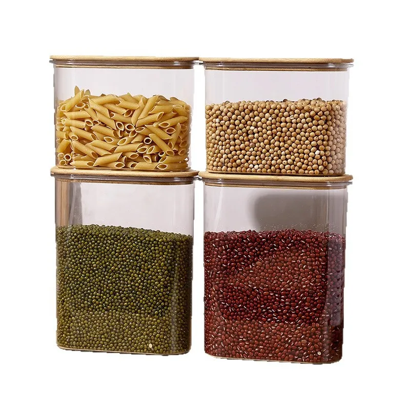 Large-capacity Transparent PP Plastic Food Storage Tank Moisture Dust-proof Bamboo Lid 1500ml/2500ml for Potato Chips Dried