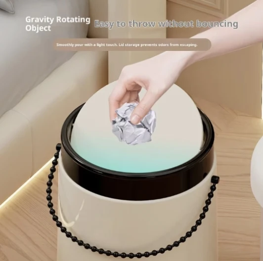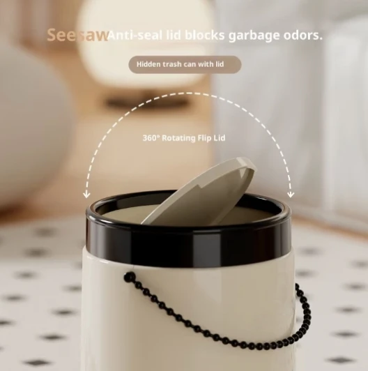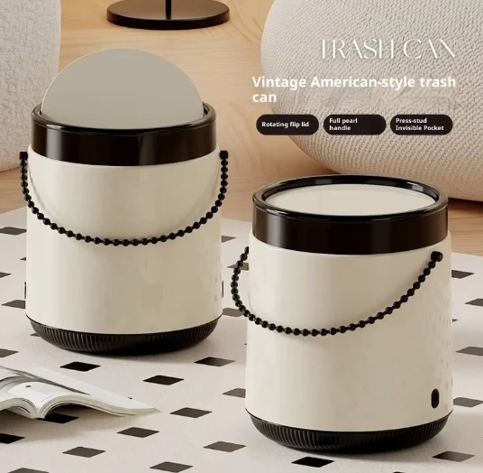 Plastic Ins Cream Style Eco-friendly Portable Trash Bin Retro Home Living Room Kitchen Office High-end Automatic Flip China