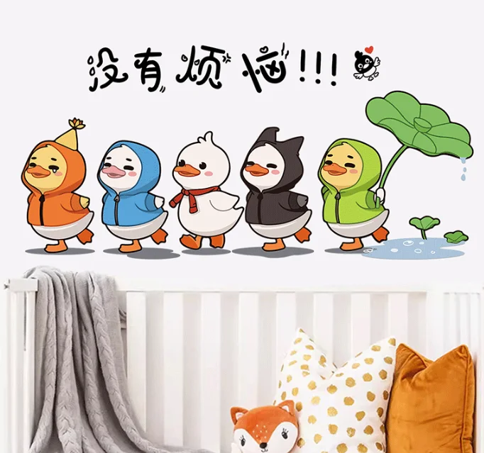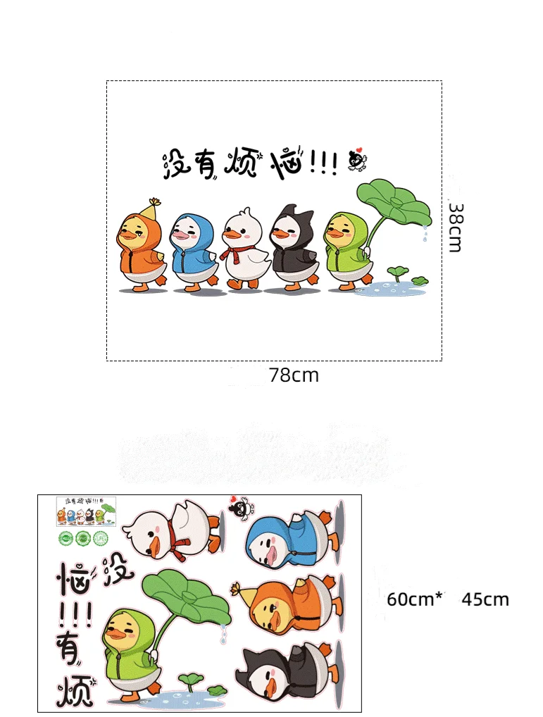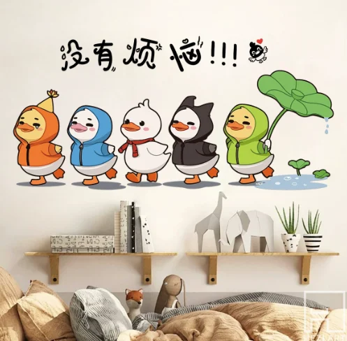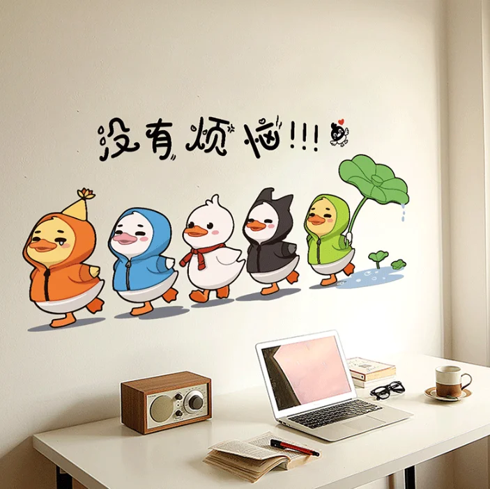 No Worries Cartoon Creative Background Waterproof Paper Wall Sticker for Bedroom Wall Decoration