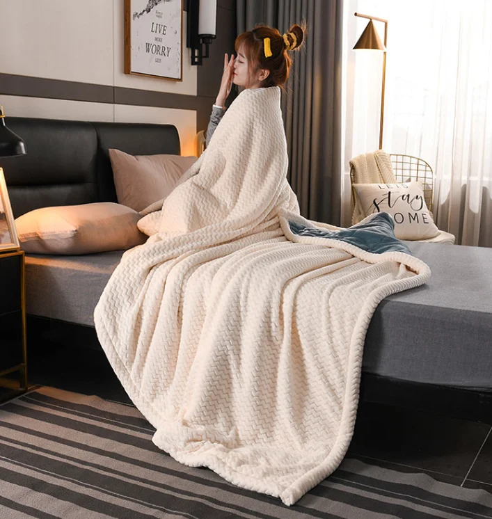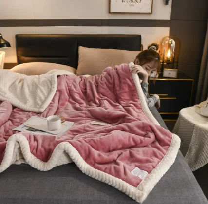 Three-layer Padded Thickened Composite Babe Fleece Light Luxury Farai Fleece Quilt Lunch Break Four Seasons Solid Color Blanket