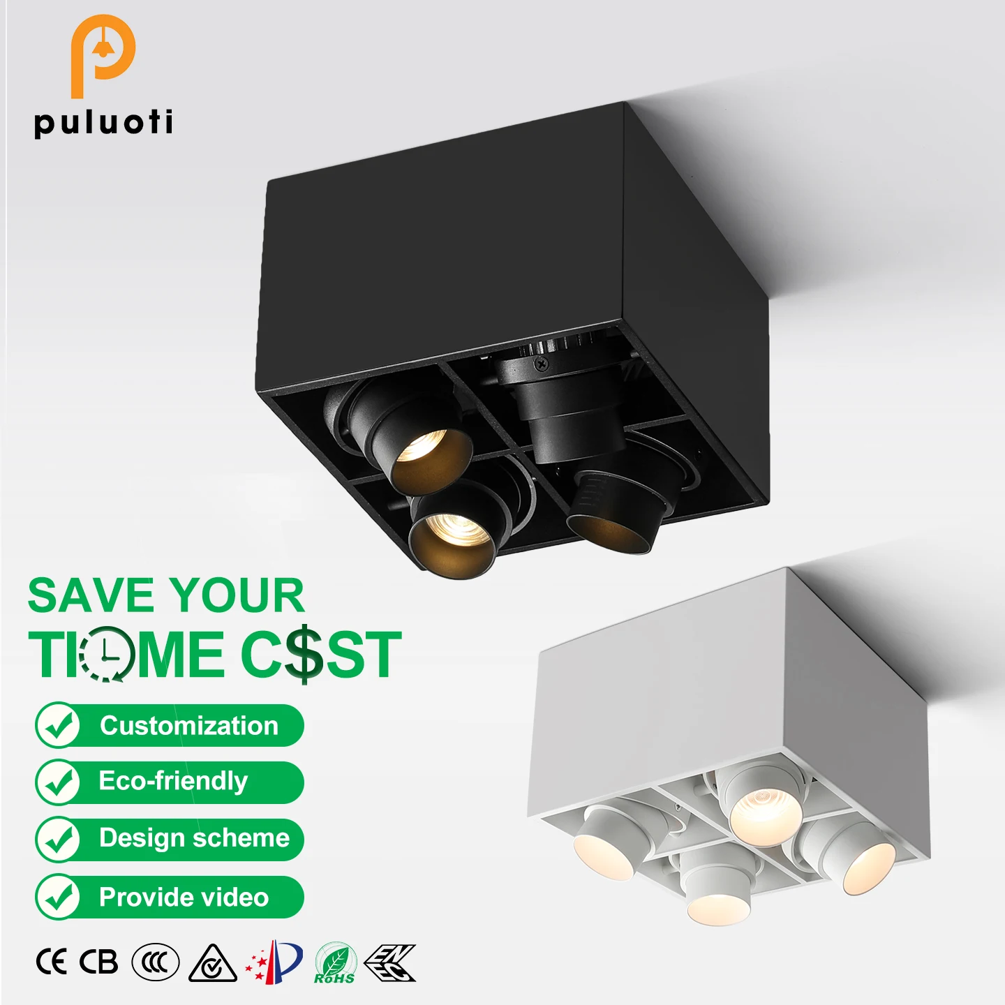 PULUOTI Commercial Zoomable Cob LED Spotlight 15° 24° 38° 60° Surface Mounted Modern Design Aluminum Shop Light System
