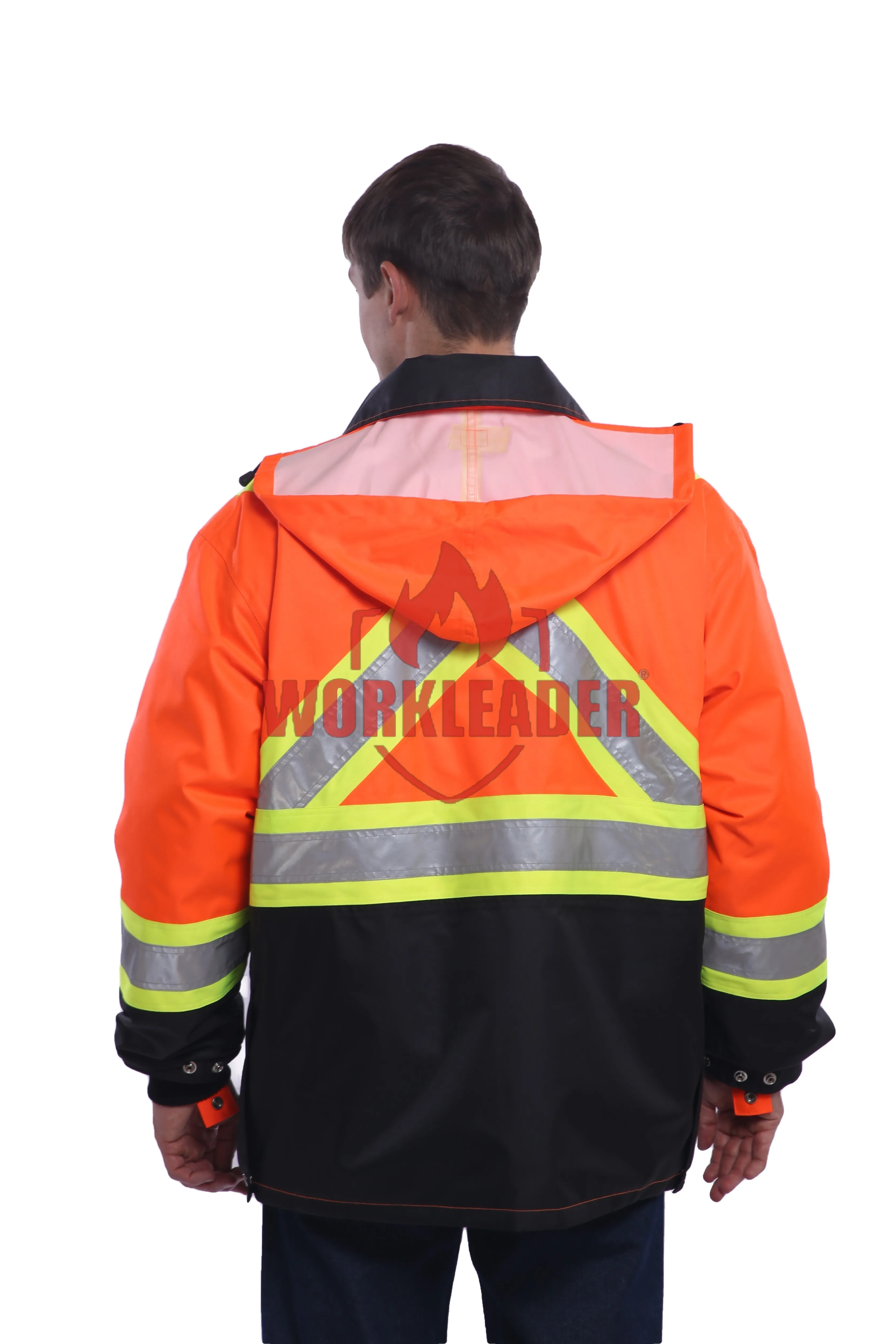 Custom Winter Hi Vis Oxford Waterproof Windproof Breathable Reflective Durable Unisex Parka Outdoor Safety Raincoat Workwear