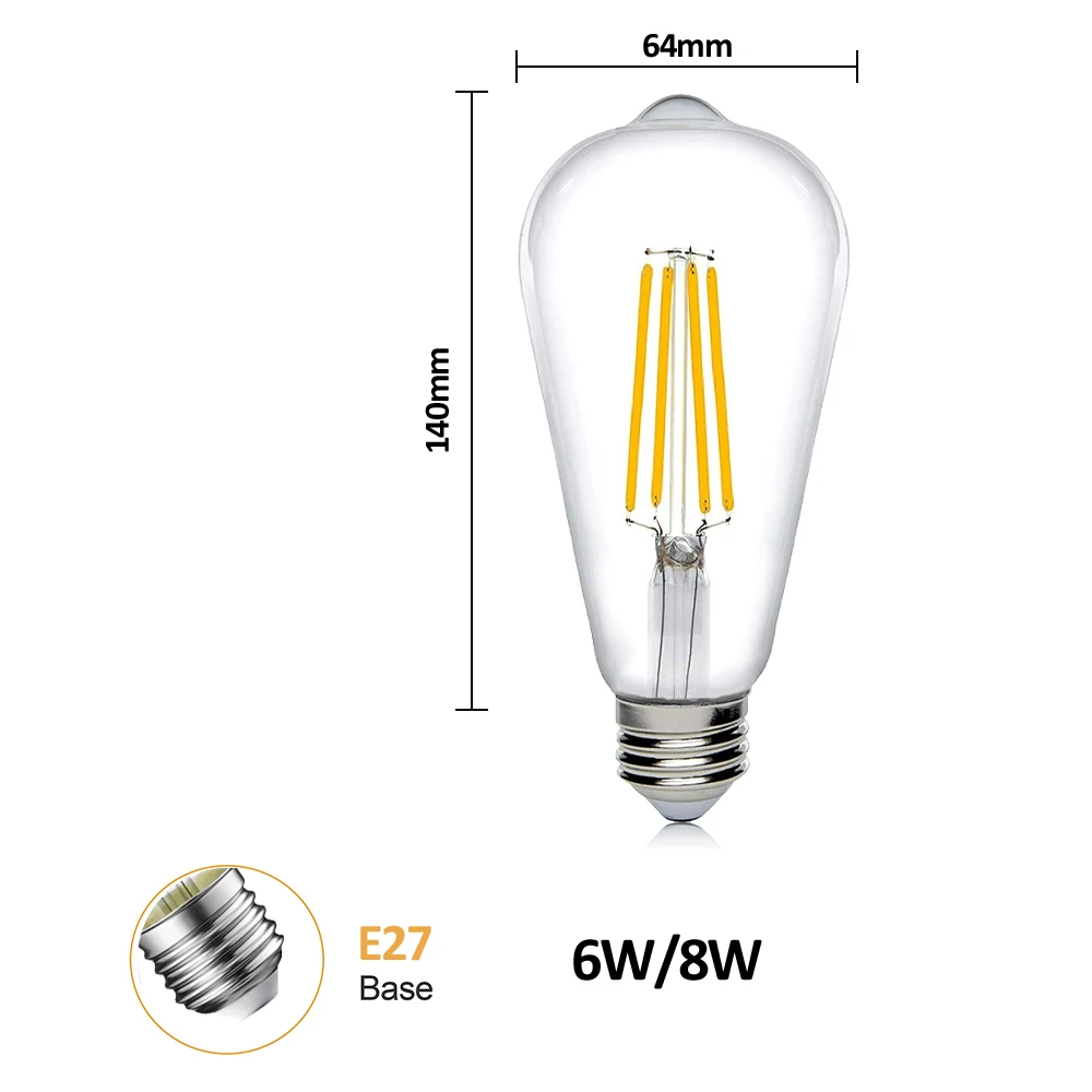Vertak Clear Glass LED Filament Bulb 4W 6W 8W with 3000K 4000K 6500K Product Genre LED Filament Light Bulb