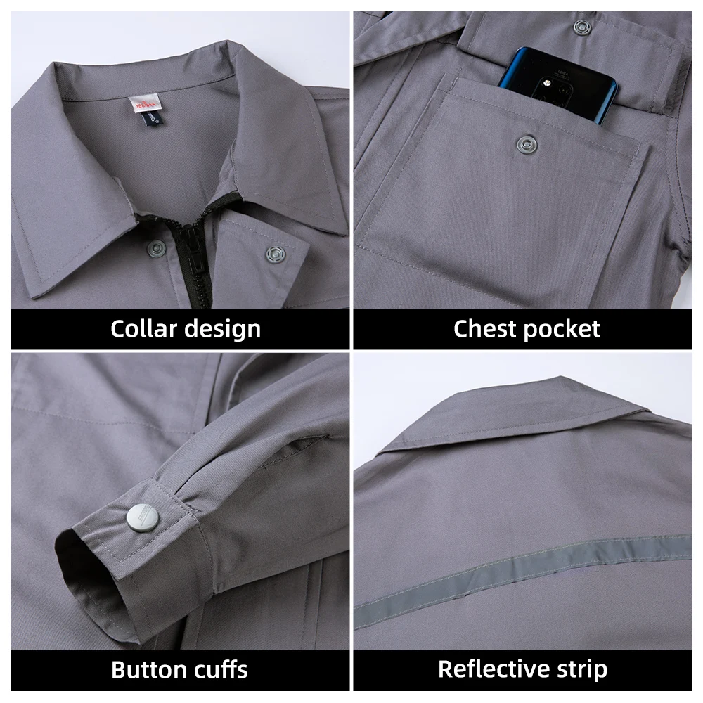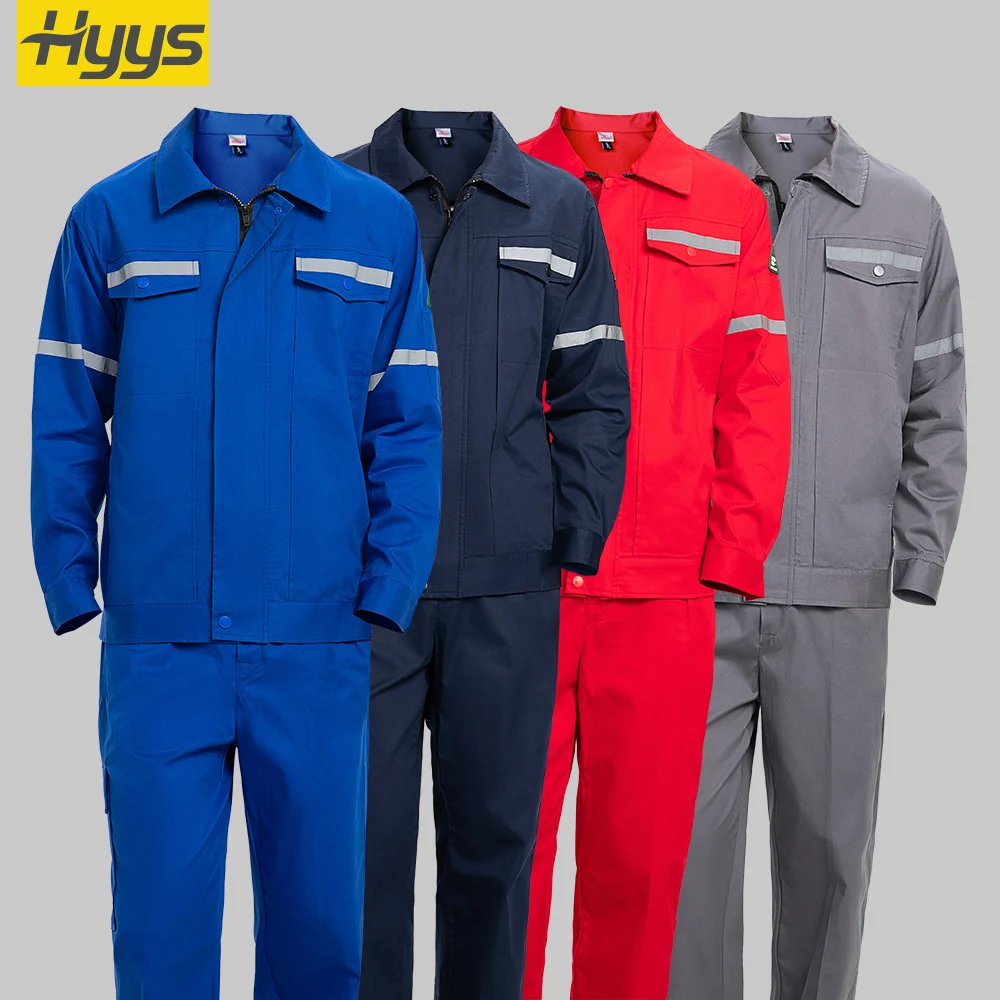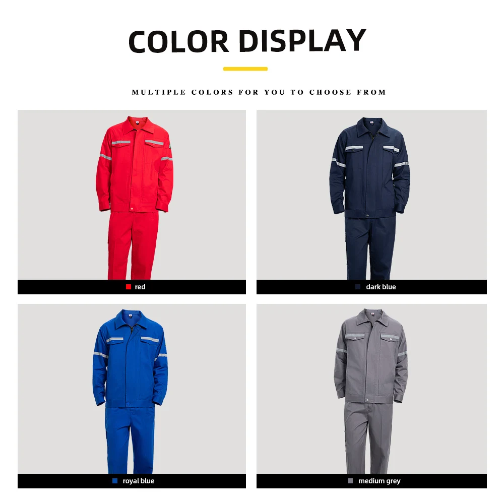 Summer Long Sleeve Reflective Worker Uniforms Breathable Safety Work Clothes Suits Pure Color Workwear Sets