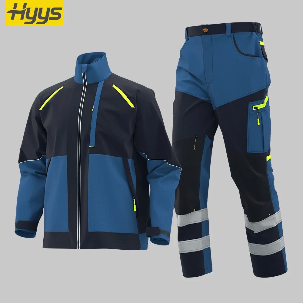 Autumn Spring Winter Tear-Resistant Work Clothes Sets Outdoor Safety Rip-Stop Workwear Suits with Reflective Strips
