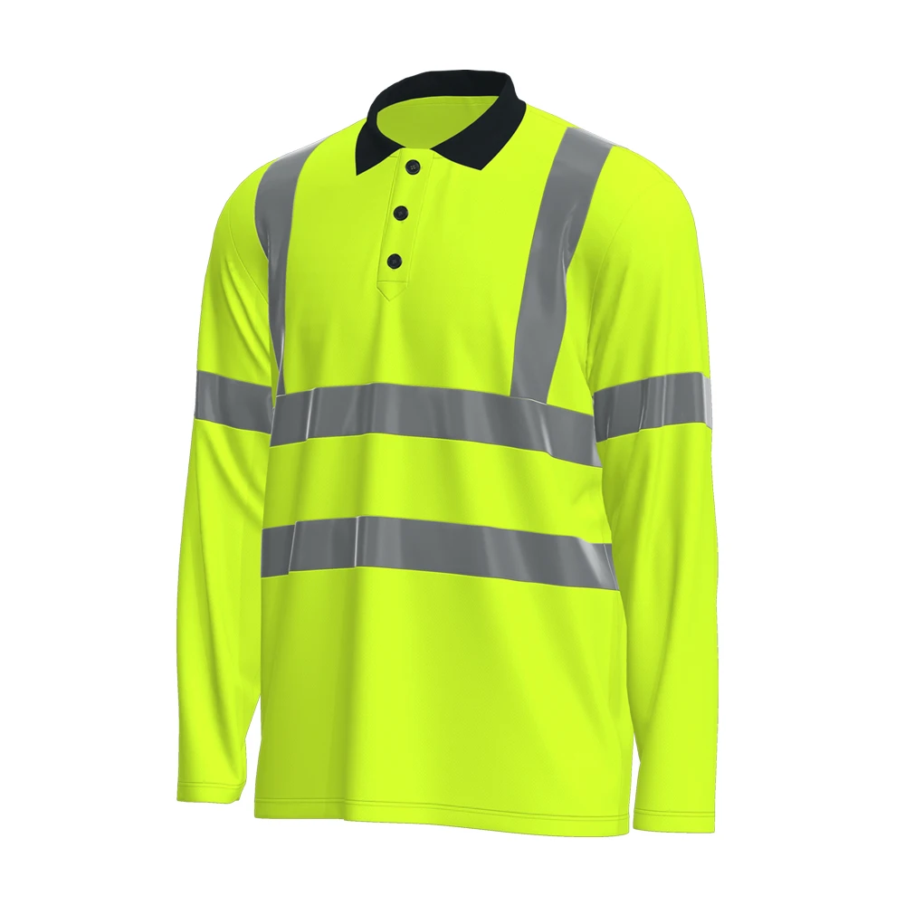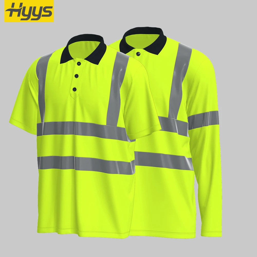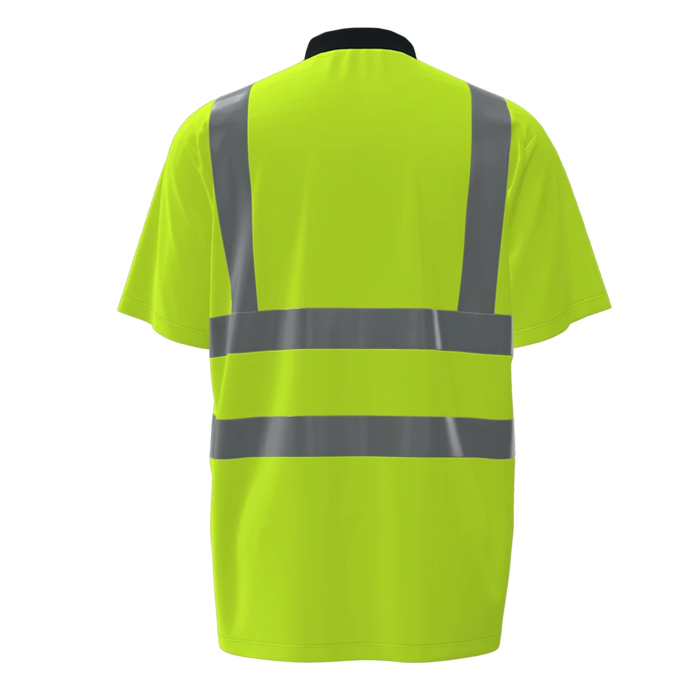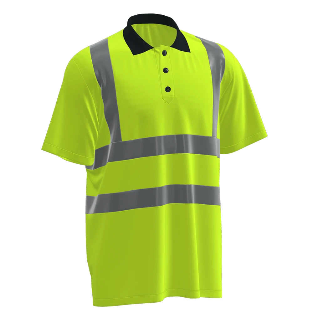 Hot Sale Polyester Hi Vis Polo Shirts Fluorescent Green Reflective Pure Color Work T Shirt Roadway Safety Work Clothes