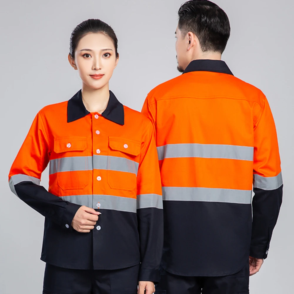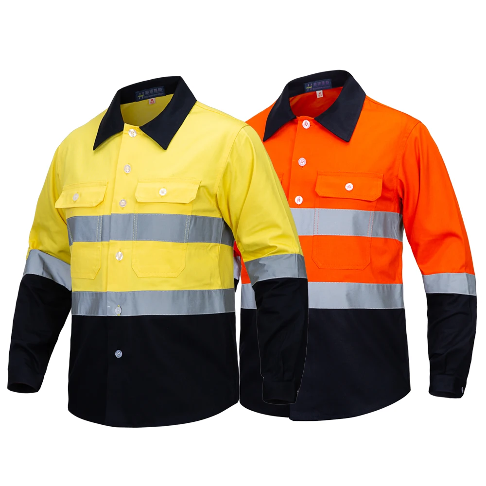 Cotton Hi Visibility Workwear Custom Work Shirts Cost Construction Work Clothes for Men Reflective Strips